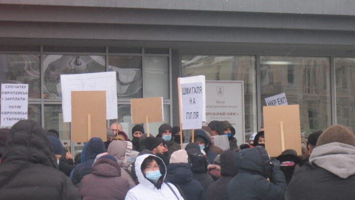 Сьогодні, 29 січня, на протест проти підвищення комунальних тарифів вийшли вінничани. Близько десятої ранку протестувальники зібрались під міськрадою з плакатами “Шмигаля- на гілля”, “Спочатку європейські зарплати – потім європейські тарифи”.