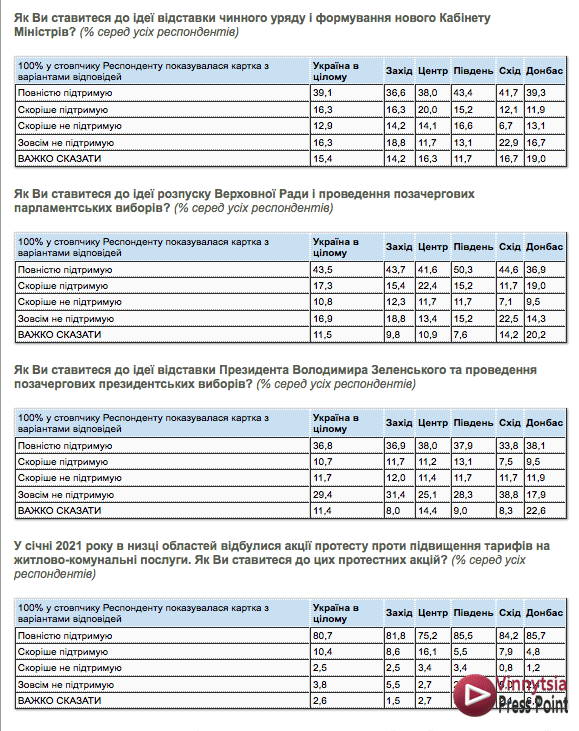 Відставку Володимира Зеленського та проведення позачергових президентських виборів підтримує 48,5%, – зазначили в “Партії Вінничан”.