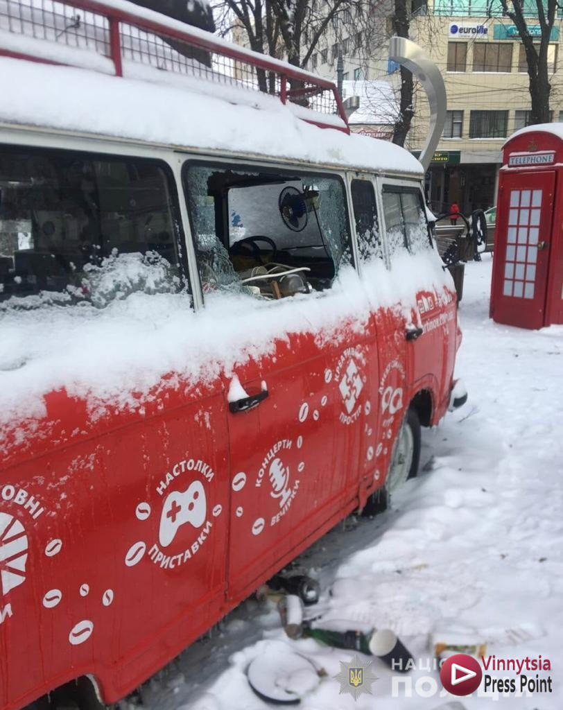 Як повідомили в поліції Вінниччини, ранком, 12 лютого, до поліції надійшло повідомлення, що вночі невідомі особи в центрі міста розбили бус, де продавали каву. Розбивши вікно, зловмисники викрали обладнання для приготування кавових напоїв.