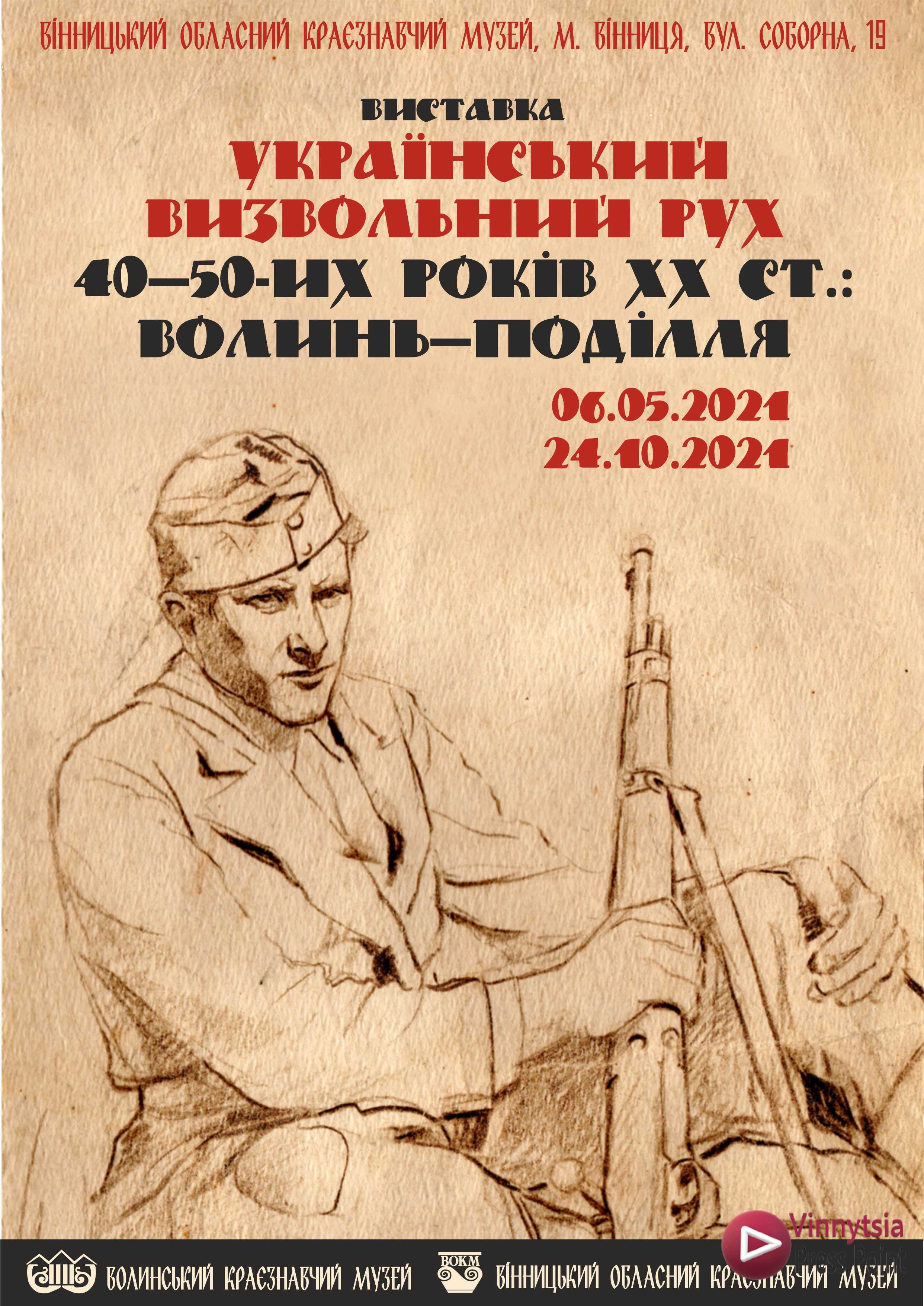 У межах проєкту міжмузейного обміну сьогодні, 6 травня о 15:00, у 13-15 експозиційних залах Вінницького обласного краєзнавчого музею відкривається виставка, матеріали якої розповідають про героїчну сторінку національно-визвольної боротьби Українського народу: антинацистський та антирадянський спротив ОУН та УПА на теренах Волині й Поділля у 40-50-их рр. минулого століття.