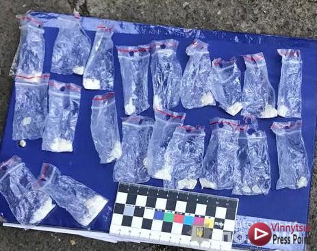 Як повідомив начальник Вінницького районного управління поліції Віталій Курчик, під час поверхневого огляду співробітники поліції вилучили у затриманого згортки з забороненою речовиною. Під час спілкування з поліцейськими зловмисник зізнався, що збирався зробити «закладки» з PVP-сіллю на території міста.