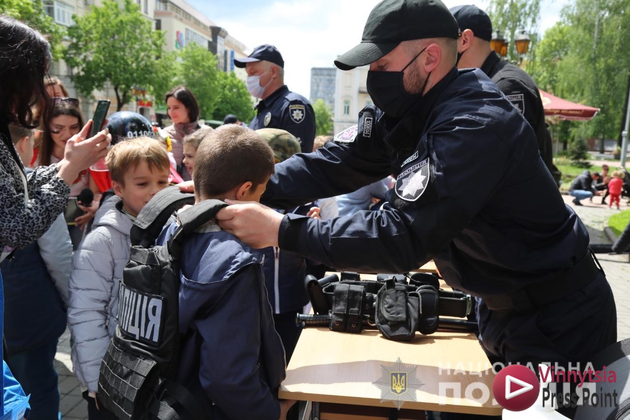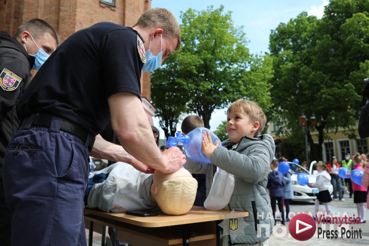 Вчора, 20 травня, у Вінниці на Європейські площі ювенальні поліцейські спільно з працівниками груп реагування патрульної поліції та інструкторами тренінгового центру провели для юних вінничан навчальний захід, метою якого зменшення травматизму на дорогах. Поліцейські  нагадали дітям правила дорожнього руху, роздали світловідбиваючі стрічки та навчили надавати домедичну допомогу.