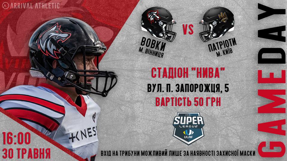 В неділю, 30 травня о 16:00, відбудеться перша домашня гра місцевої команди з американського футболу «Вінницькі Вовки» в межах чемпіонату України. Суперниками вінничан стануть київські «Патріоти».