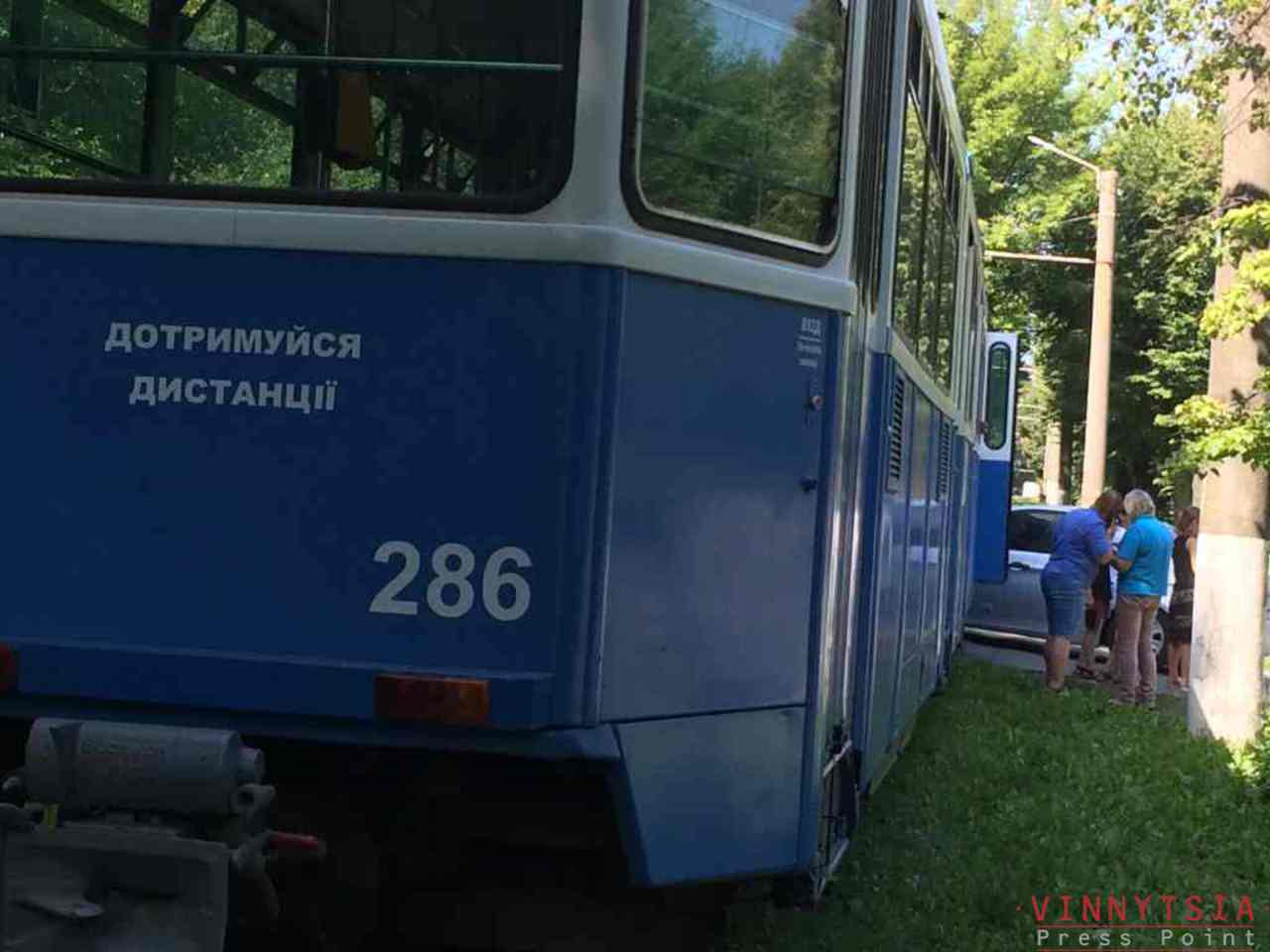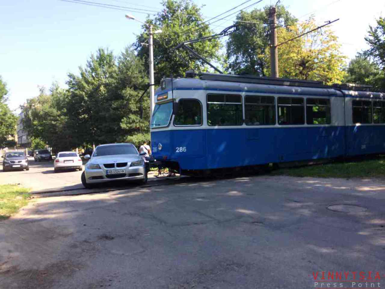 У Вінниці на Стрілецькій трамвай врізався в автомобіль. Сьогодні близько 10:25 на перехресті з вулицею Тімірязєва водій автомобілю не помітив трамвая. Внаслідок цього відбулося зіткнення. Ушкоджень зазнав лише автомобіль. Внаслідок зіткнення ніхто не постраждав. Нагадаємо, що на даному перехресті аварії з трамваями трапляються не вперше. Про це ми повідомляли раніше. 30 серпня 2019 року на даному перехресті автомобіль Волга врізався в трамвай. Тоді в аварії з людей ніхто не постраждав лише частково був ушкоджений трамвай та автомобіль.