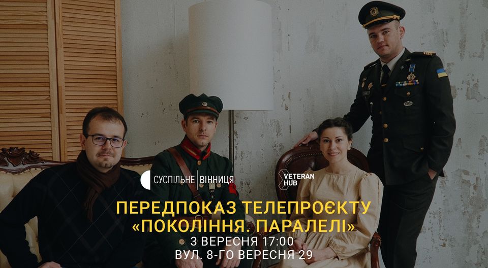 У Вінниці відбудеться передпоказ телепроєкту “Покоління. Паралелі”. 3 вересня о 17:00 Суспільне Вінниця, Віта Приймак і Veteran Hub Вінниця запрошують на презентацію-передпоказ телепроєкту «Покоління. Паралелі».