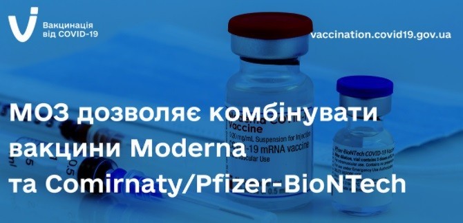 Іншими словами, у випадку коли перше щеплення проведено вакциною Moderna, друге можна робити Comirnaty/Pfizer-BioNTech та навпаки.