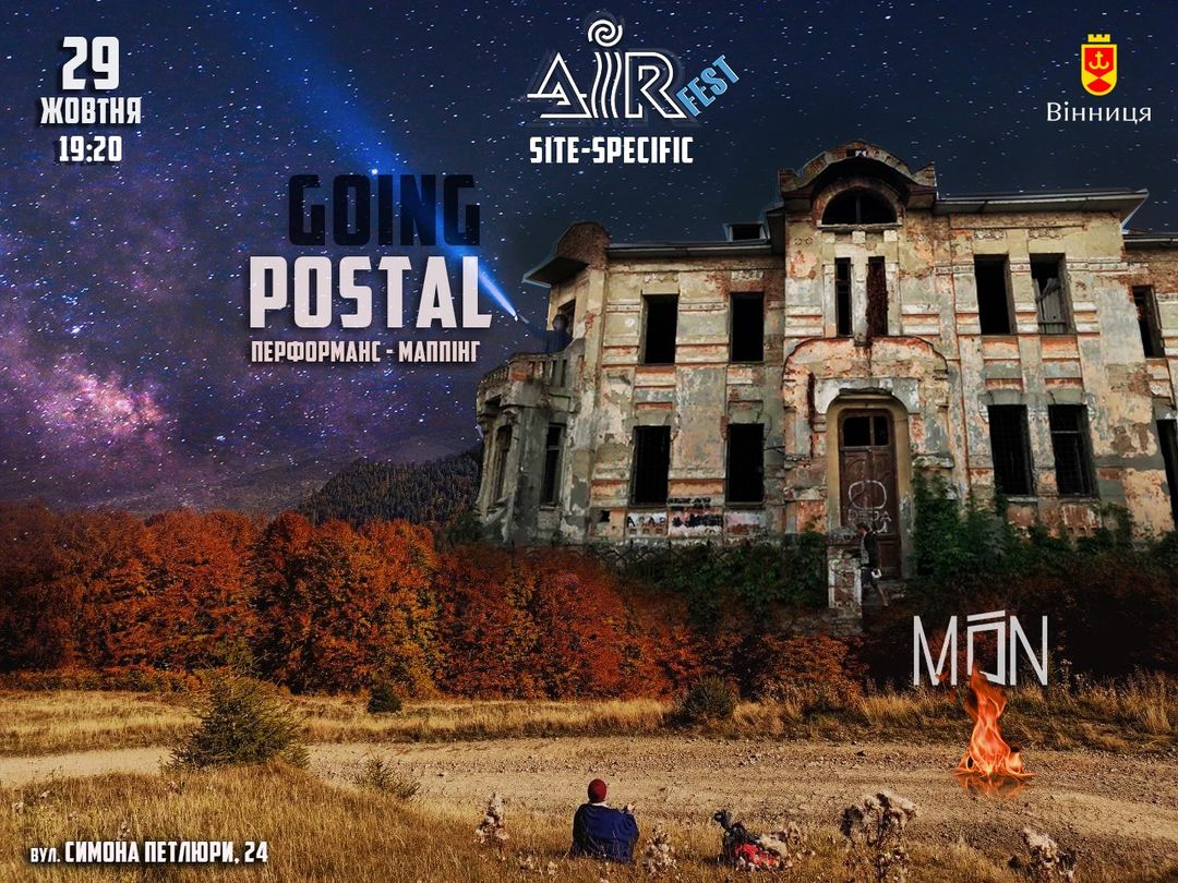Будівля колишньої пошти стане локацією проведення мистецьких заходів в межах проведення мистецького фестивалю AIR Fest Vinnytsia. В закинутій будівлі вінницького поштамту по вулиці Симона Петлюри, 24, в п’ятницю 29 жовтня, відбудеться перформанс «Going postal». Початок о 19:30.