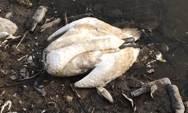 На Вінниччині у селі Северинівка Жмеринського району, на місцевій водоймі, гинуть лебеді. За минулий тиждень кілька десятків мертвих птахів виловили та спалили місцеві рибалки, розповів Юрій Дяків, директор ТОВ «ДІВІЯ», яке на водосховищі вирощує та виловлює рибу.