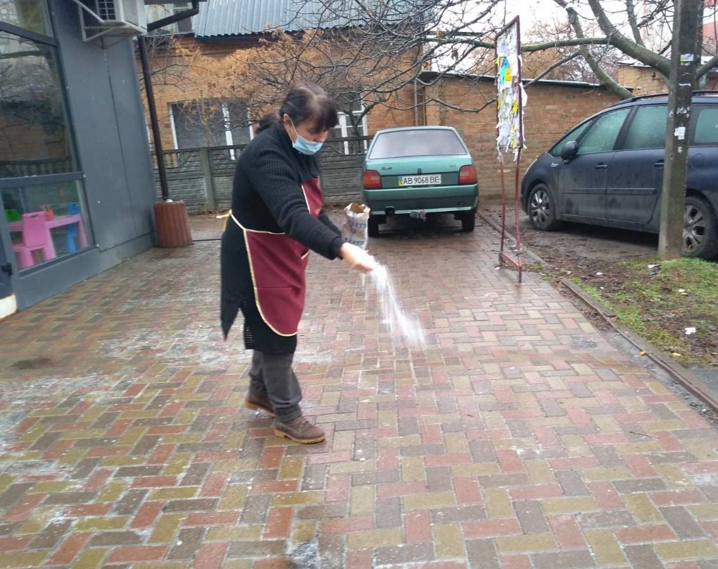 Ще з вечора міські комунальні служби обробляли вулиці Вінницької міської територіальної громади протиожеледними засобами, щоб на дорогах та тротуарах не утворювалась льодова кірка. У дворах багатоповерхівок 300 двірників з шостої години ранку посипали доріжки протиожеледною сумішшю.