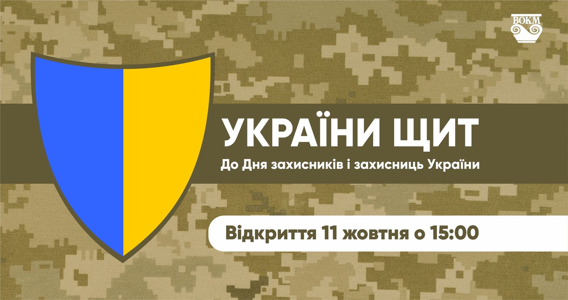 Виставка «УКРАЇНИ ЩИТ» присвячена тим, хто сьогодні утворює над нашою країною щит захисту і подібно покрову Пресвятої Богородиці захищають нас від ворожих куль і ракет. У першу чергу небесним янголам, які віддали за Україну найцінніше – власне життя: Героям Небесної Сотні та полеглим воїнам у російсько-українській війні. А також захисникам і захисницям України, хто першими вийшов на Майдан проти свавілля влади; хто з 2014 р. і по сьогодні тримає фронт і боронить українські землі від окупантів; хто ділиться своїми знаннями, силою, мужністю і професіоналізмом для захисту нашої держави – військовим, медикам, капеланам, волонтерам, усім, хто сьогодні тримає тил і наближає нашу Перемогу.