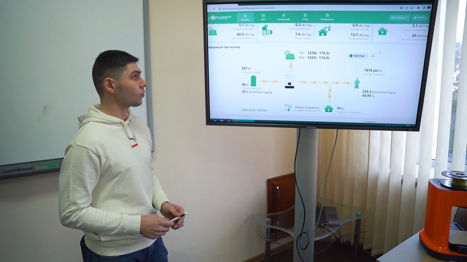 “У нас на даху ми встановили сонячні панелі, які генерують сонце на електроенергію. Вона потім подається на інвертор, звідти вже на наше споживання, або акумулятор. Ми під’єднали нашу станцію до наукової лабораторії, де зможемо далі продовжити навчально-дослідний процес та ввімкнути комп’ютери, принтери та інше обладнання”, – говорить студент інженерно-технологічного факультету Сергій Мельничук.