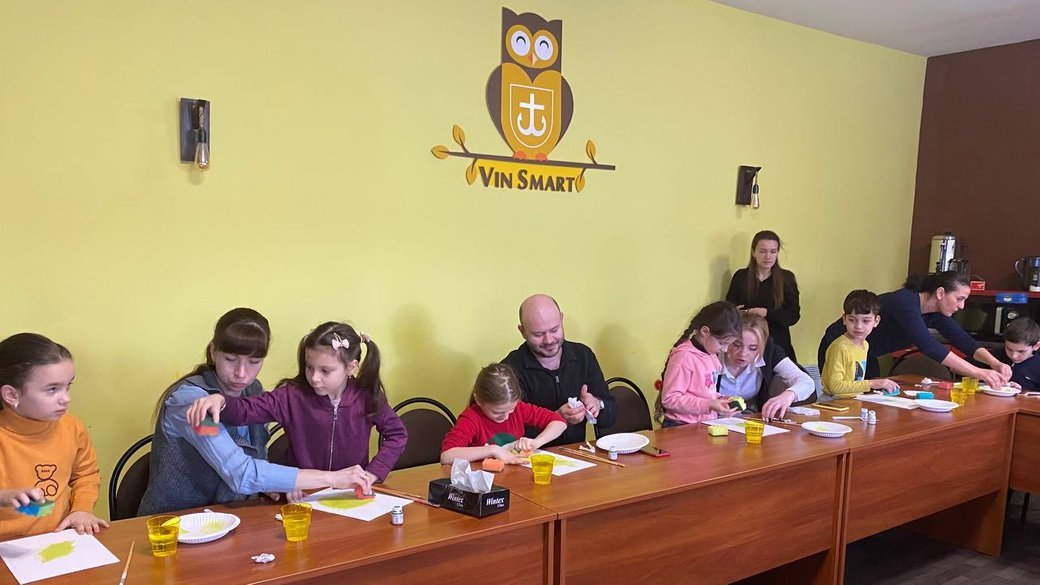 Захід ініціювали у центрі підліткових клубів за місцем проживання “VinSmart”. Його директор Дмитро Мира говорить, що метою сімейного майстер-класу – дати можливість батькам і дітям провести час разом і зайнятися творчістю.