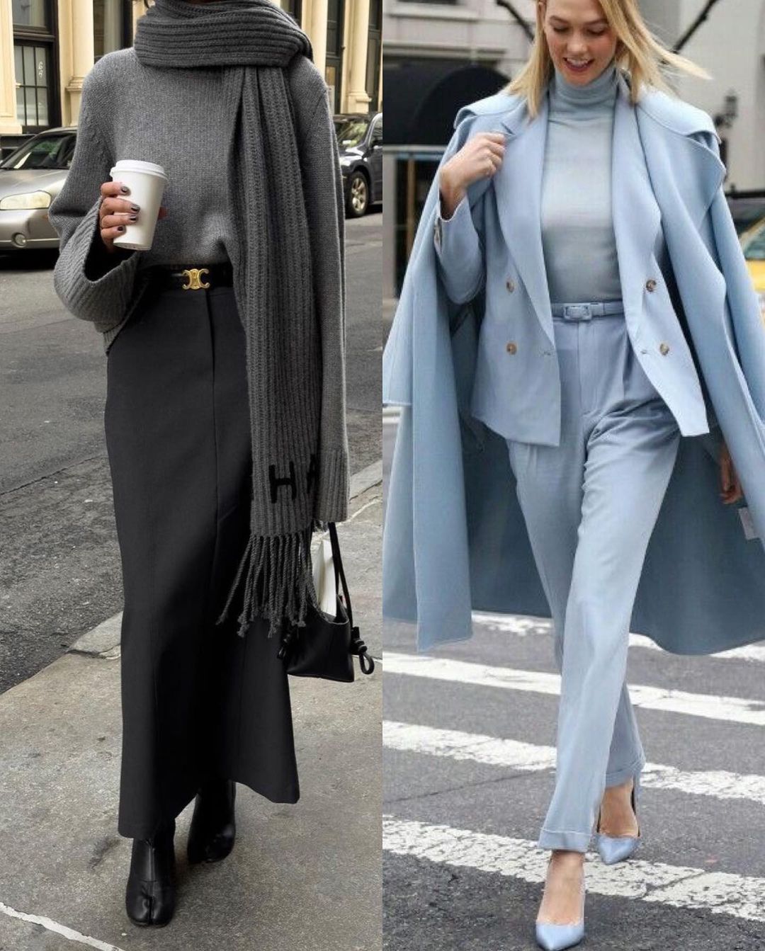 За словами стилістки, такі образи виглядають благородно. А ще це чудова корекційна методика для тих, хто хоче виглядати вищими і стрункішими.