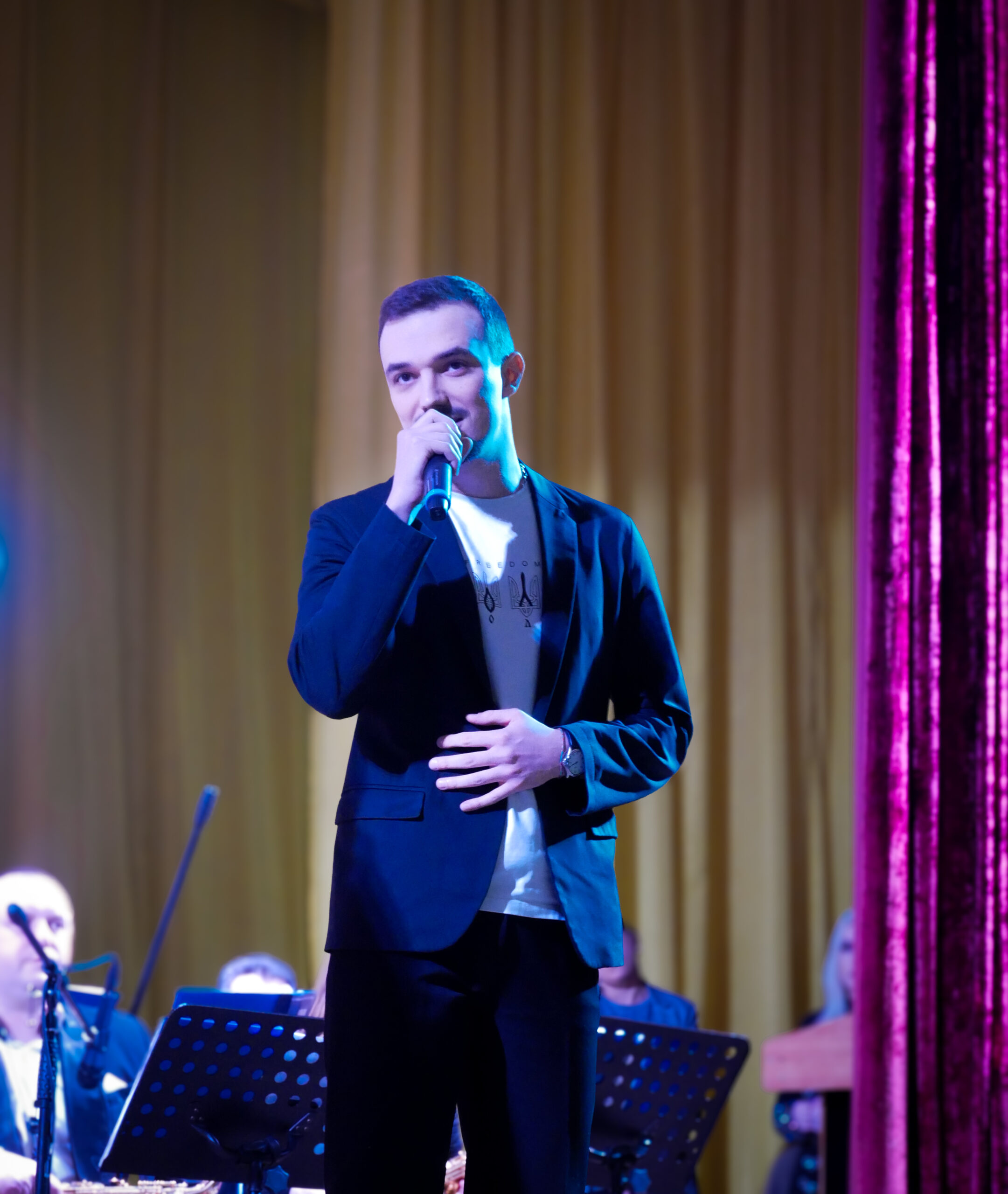 У залі, наповненому глядачами, лунали патріотичні пісні виконавців оркестру “ВінБенд”, таких як Максим Тріска, Анастасія Красуцька, Оксана Кулик та Олена Кукурузяк. Вони виконали ряд відомих українських творів, включаючи “Водограй”, “Край, мій рідний край”, “Червона рута”, “Біля тополі” та “Пісня буде поміж нас”.