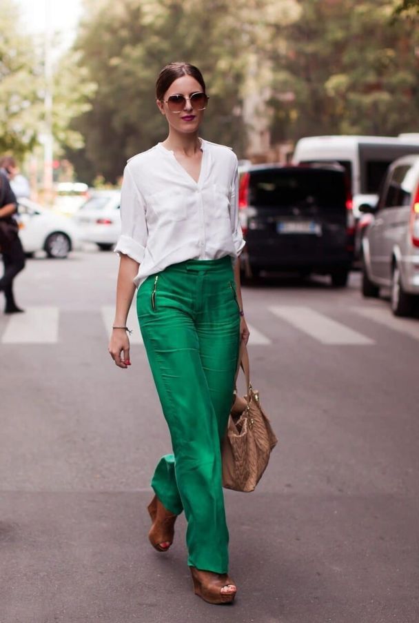 Шовкові штани доступні у різних кольорах та моделях. Образ з ними не потребує великої кількості аксесуарів, адже сама тканина додає йому грації. Шовкові штани можна носити з кросівками, балетками чи оверсайз-футболками, створюючи різноманітні та стильні образи.