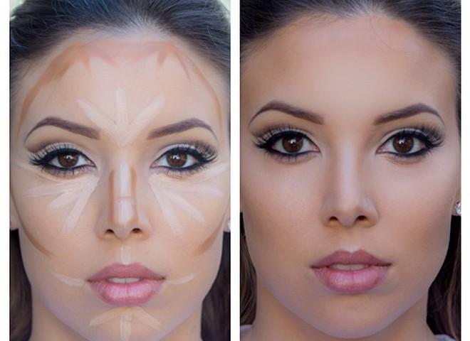 Замість того, щоб поглиблювати впадини на обличчі, використовуйте контуринг для створення ефекту підйому. Просто нанесіть бронзер напівколом, як показано на фото, і розтушуйте його.