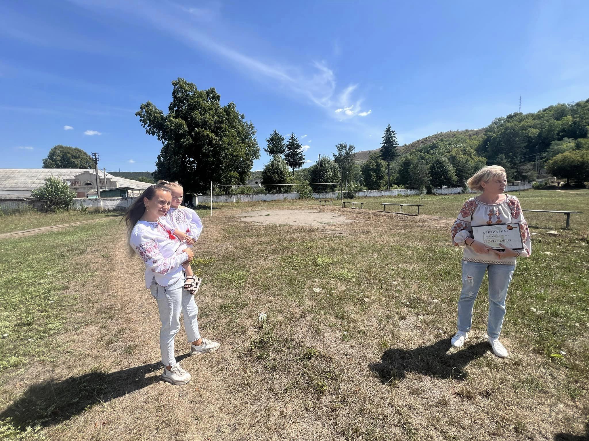 Сьогодні активісти отримали сертифікат на реалізацію цього шляхетного проєкту. Планують оновити майданчик на місцевому стадіоні: засипати його піском, встановити металеві стійки та сітку, а також пофарбувати лавки. Порадившись з молоддю, вирішили розширити плани і встановити стіл для настільного тенісу.