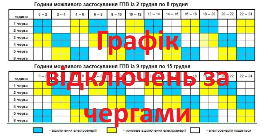 Ця інформація з’явилася на сайті компанії. Там оновлені графіки черг відключень та часові проміжки їхнього застосування подані до 15 грудня.