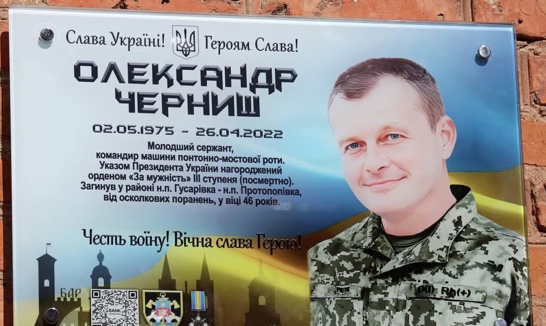 У місті Бар, на території ліцею №2, де навчався Олександр Черниш, встановили меморіальну дошку на його честь. Про це повідомила Барська міська рада.