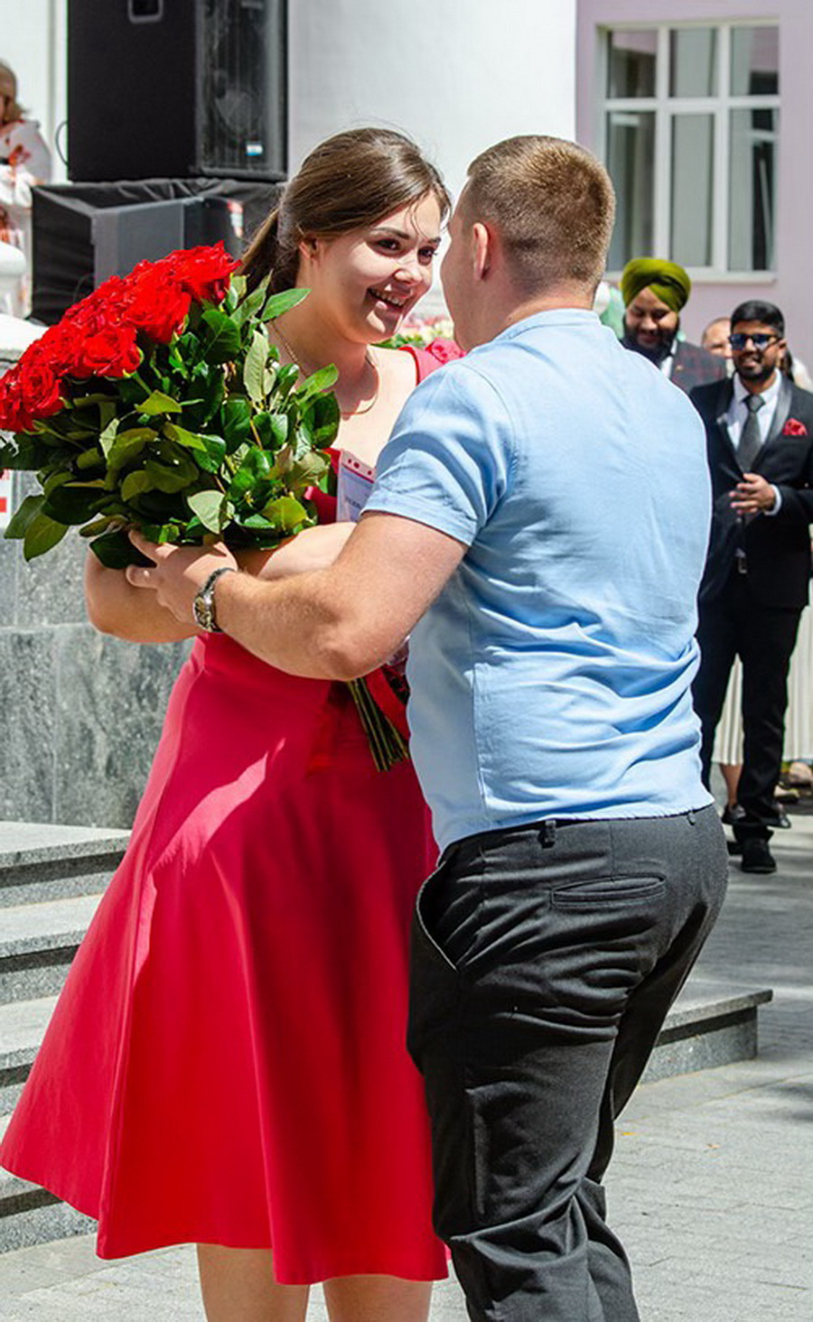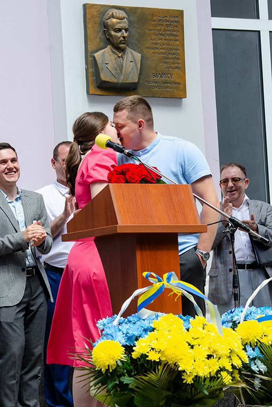 Ректорка ВНМУ Вікторія Петрушенко відзначила, що такого зворушливого моменту в історії університету ще не було. Вона привітала молоде подружжя, адже Тамара дала згоди на пропозицію.