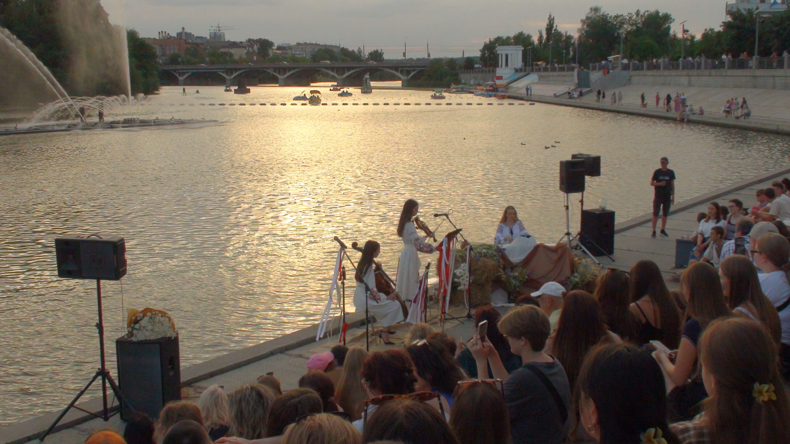 Концерт розпочався інструментальними композиціями: спершу звучало піано, згодом до нього приєдналися віолончель і скрипка. Звуки інструментів плавно лягали на ритм фонтану, створюючи особливий настрій вечора. Організатори також провели розіграш призів серед донаторів, дякуючи кожному, хто долучився до збору.