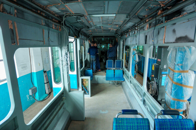 Роботи над новою секцією стартували у січні 2025 року. За цей час фахівці ВТК провели капремонт трамвая, відновили візки, змонтували середню частину, проклали електропроводку, встановили дахове обладнання, підлогу, двері та сидіння. Каркас вставки виготовило приватне підприємство «Укрторгсервіс».