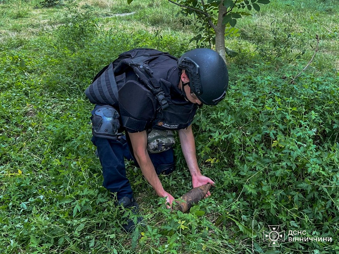У Вінниці піротехніки ДСНС знищили артилерійський снаряд калібром 76 мм, що залишився з часів Другої світової війни. Боєприпас виявили місцеві жителі неподалік одного з гаражних кооперативів.