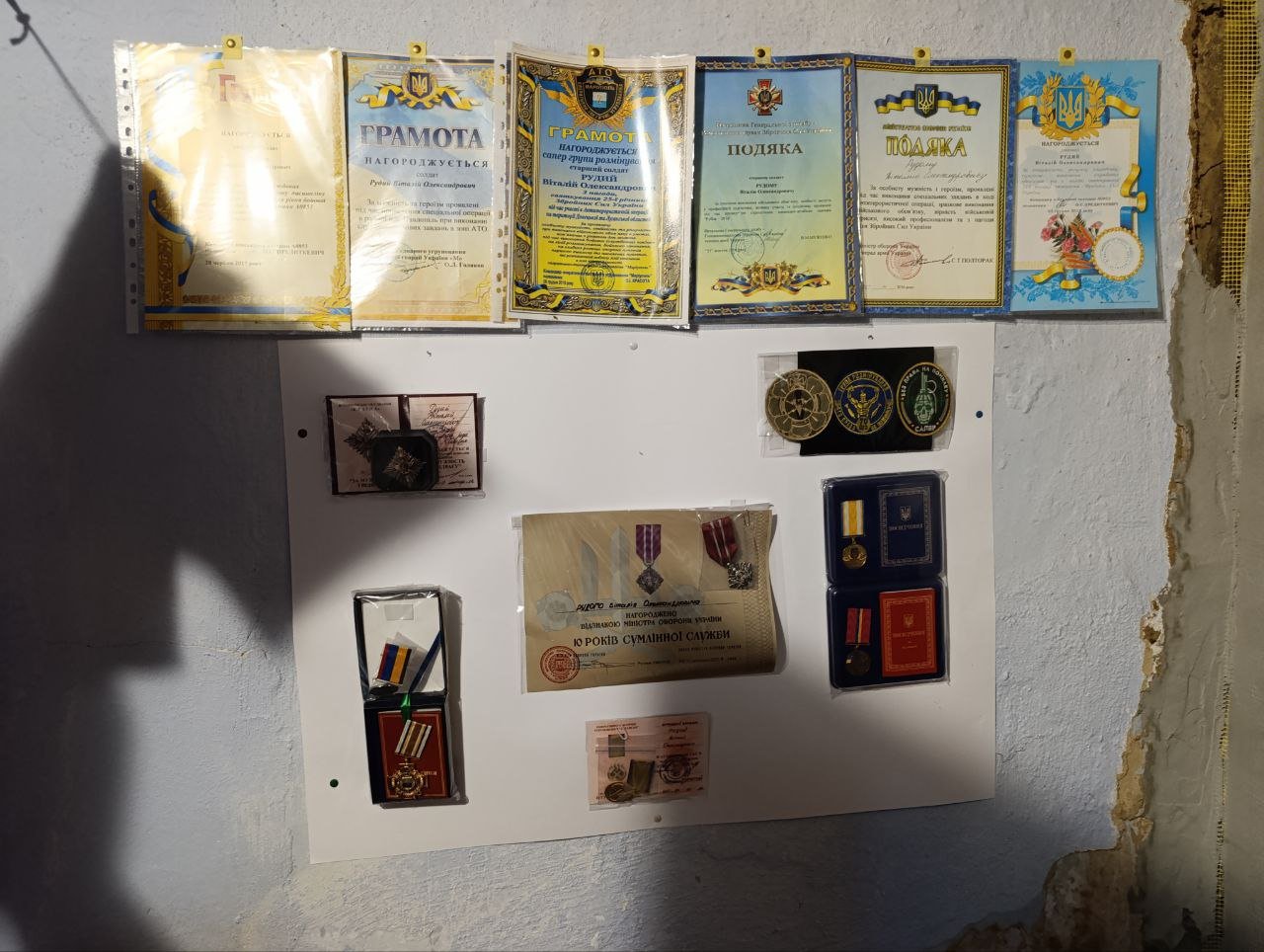 На одній зі стін в хаті висять чоловікові бойові нагороди, а поряд з ними – старі, бабині з дідом фотографії.