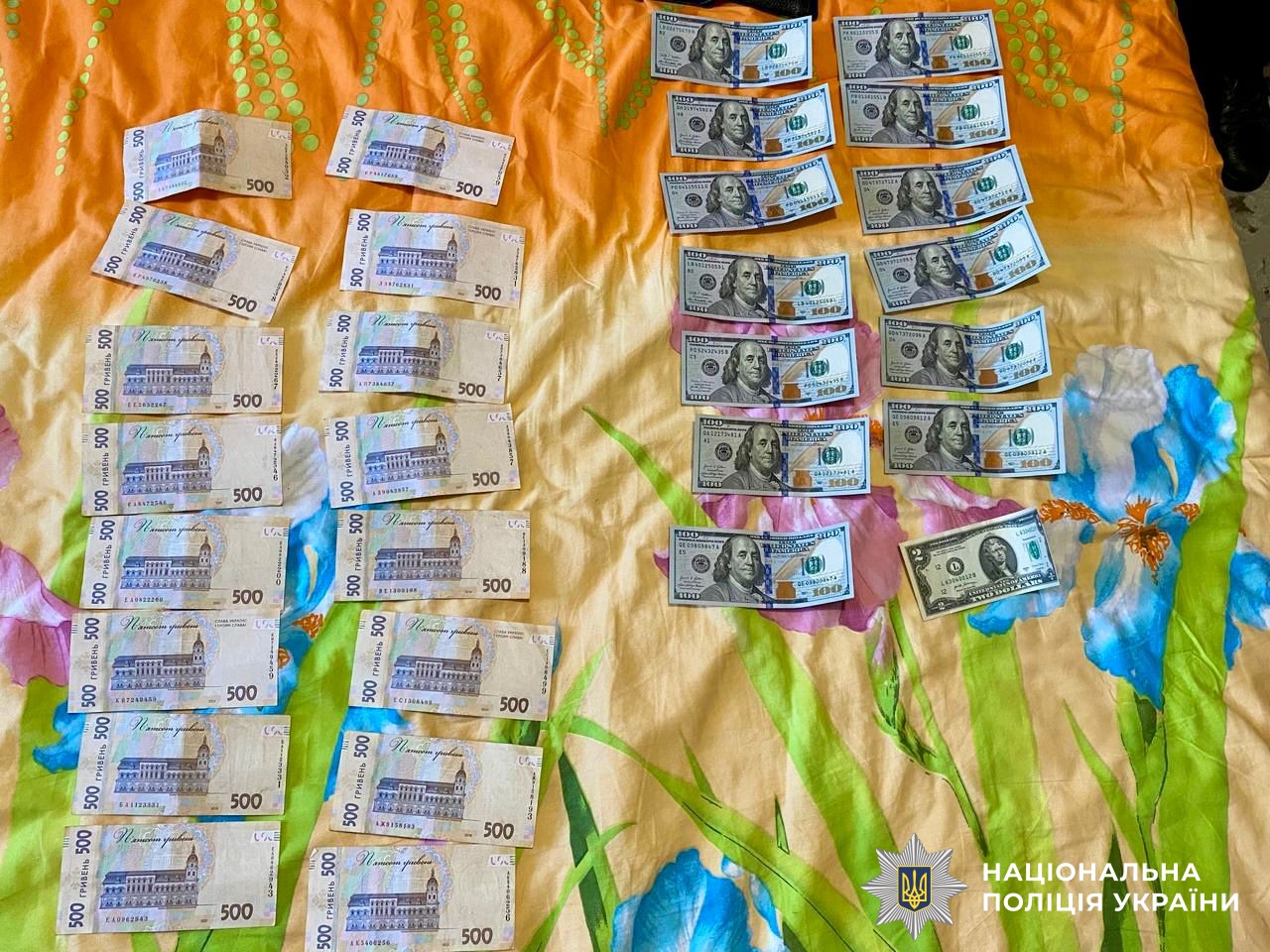 Під час обшуків правоохоронці вилучили предмет хабаря, 1600 доларів, 8000 гривень, мобільний телефон, банківські картки, документацію та автомобіль.