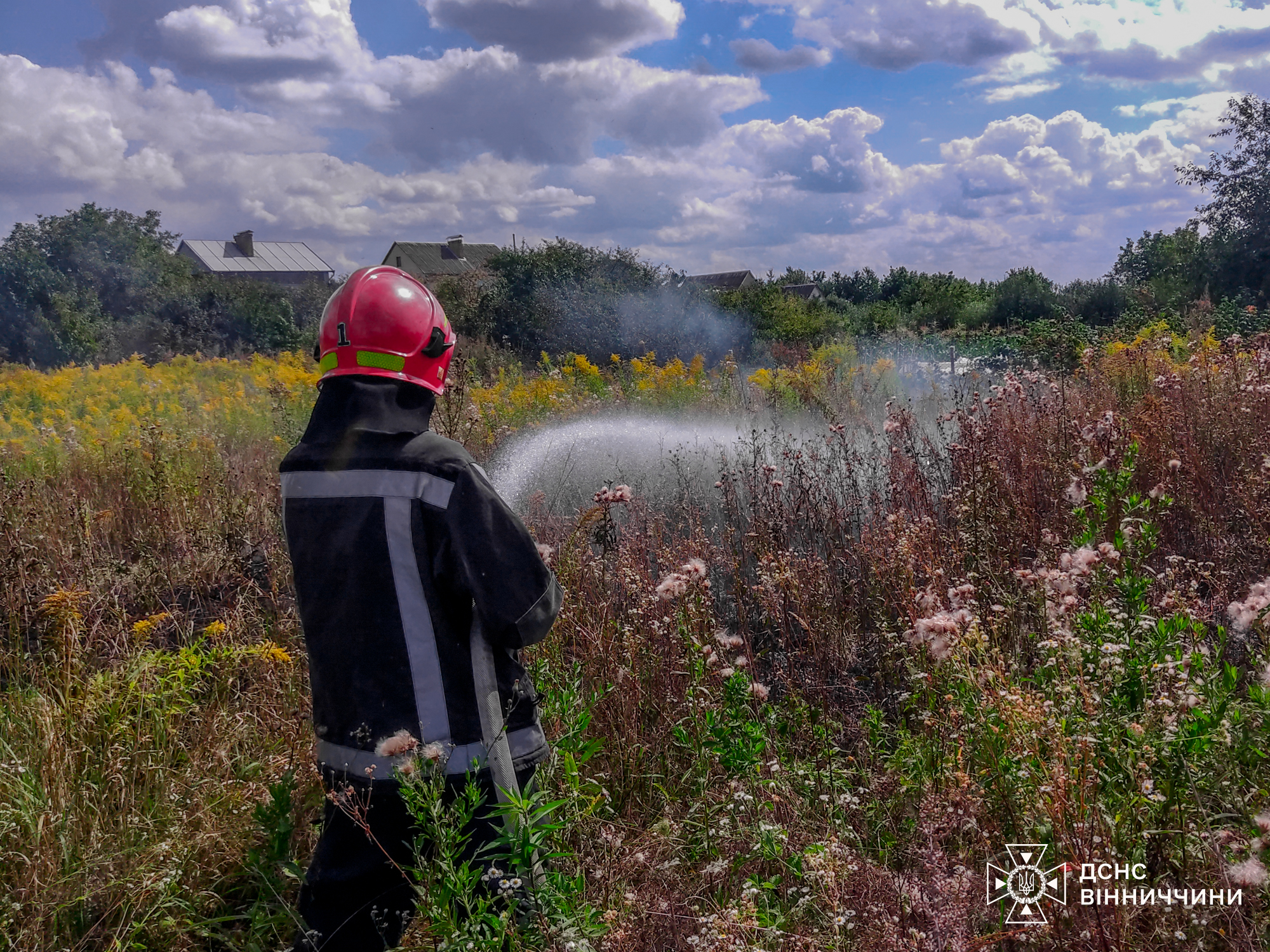 За останню добу на території Вінницької області зареєстровано 16 пожеж, з яких 11 виникли на відкритих територіях. Горіла суха трава, пожнивні залишки та сміття у Вінницькому, Гайсинському, Тульчинському, Хмільницькому районах та в м. Вінниці.