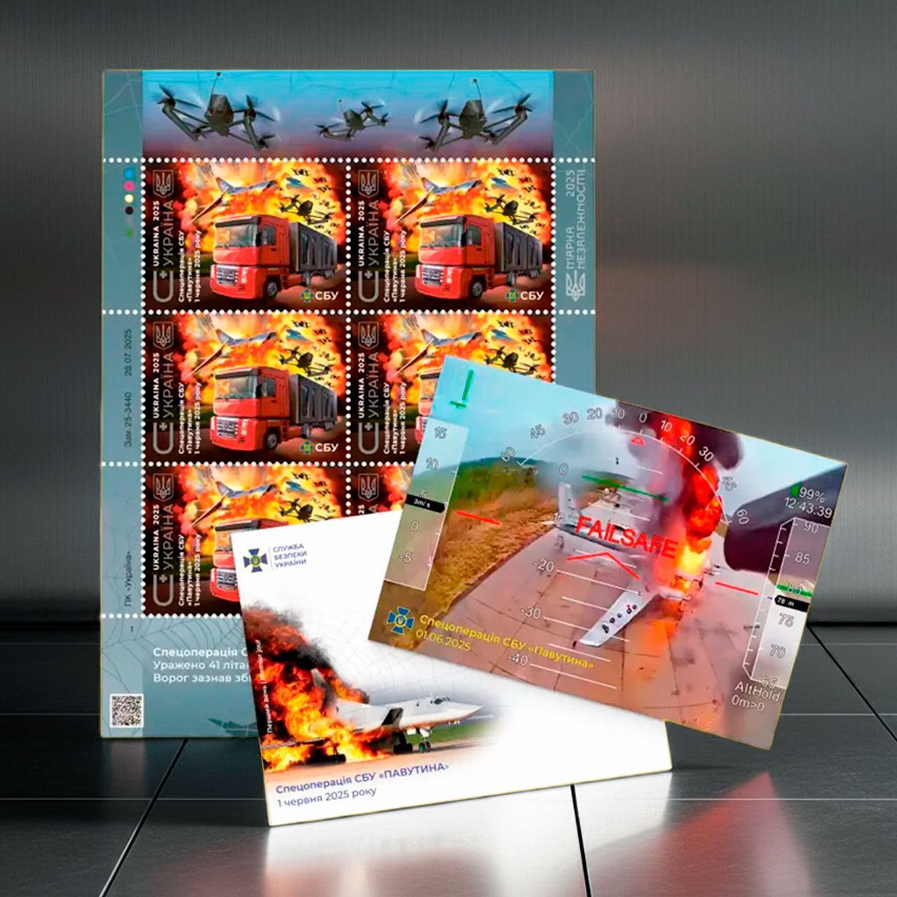Укрпошта сьогодні, 22 серпня, вводить в обіг нову марку на честь успішної спецоперації СБУ — з FPV-дронами уражено стратегічну авіацію РФ. Цей випуск запускає серію «Марки Незалежності», покликану відзначати ключові події України.