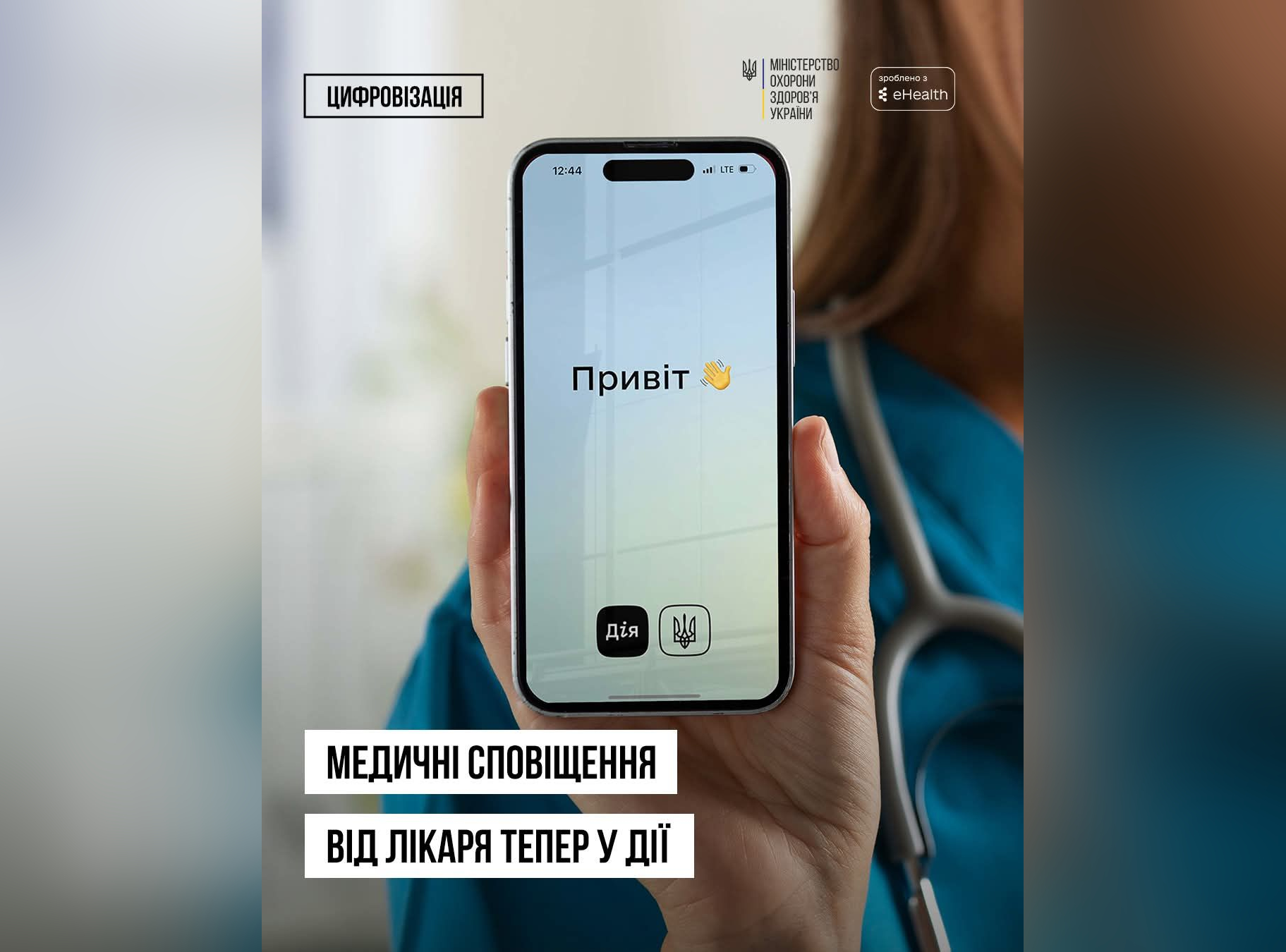 Міністерство охорони здоров’я України спільно з Національною службою здоров’я та Міністерством цифрової трансформації запустили новий спосіб інформування пацієнтів — push-сповіщення в застосунку Дія.
