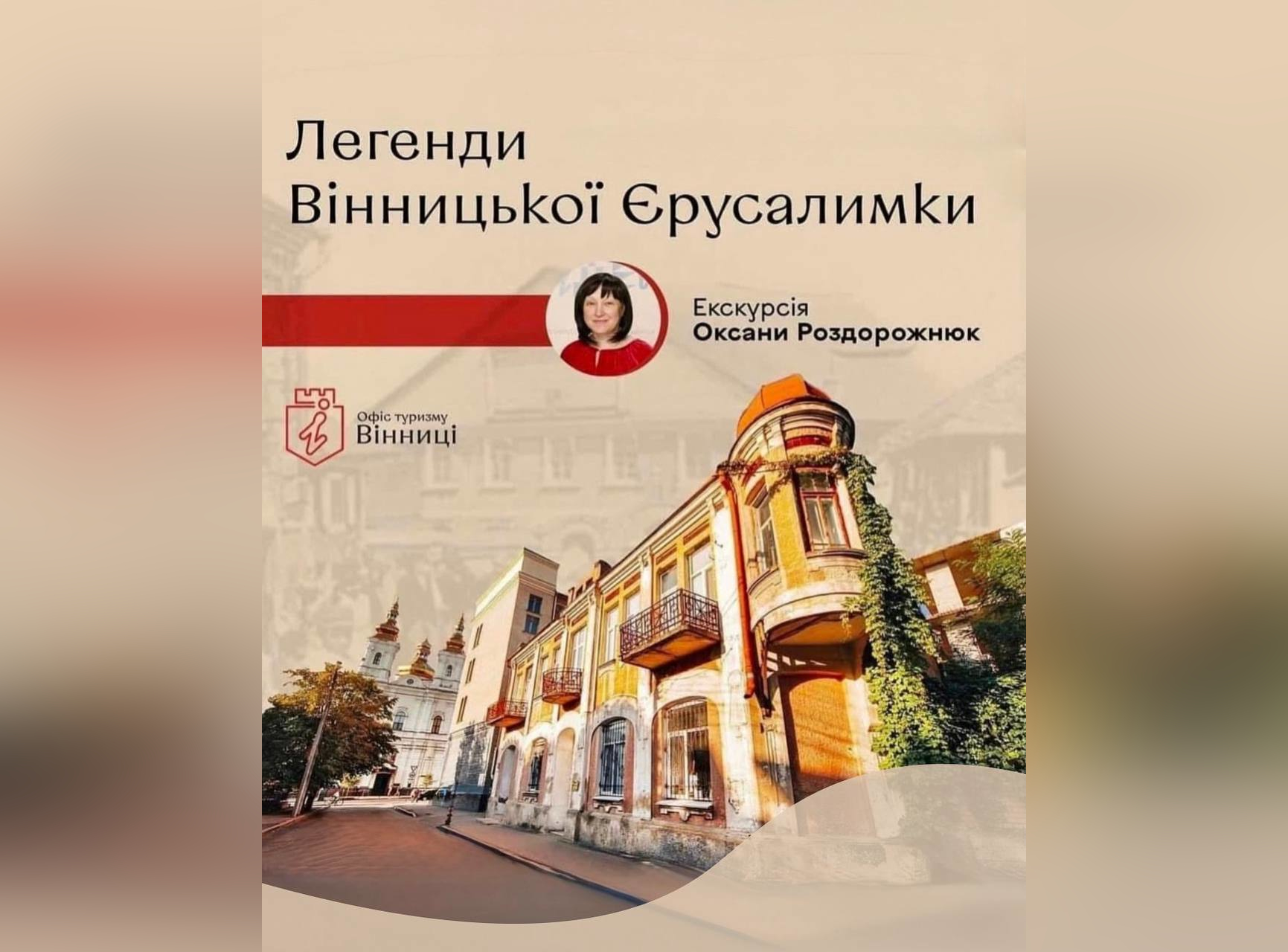 18 вересня о 17:00 у Вінниці відбудеться авторська екскурсія «Легенди вінницької Єрусалимки». Старт – біля фонтану «Мушля» на Майдані Незалежності. Про це повідомили на сторінці Офісу туризму Вінниці.