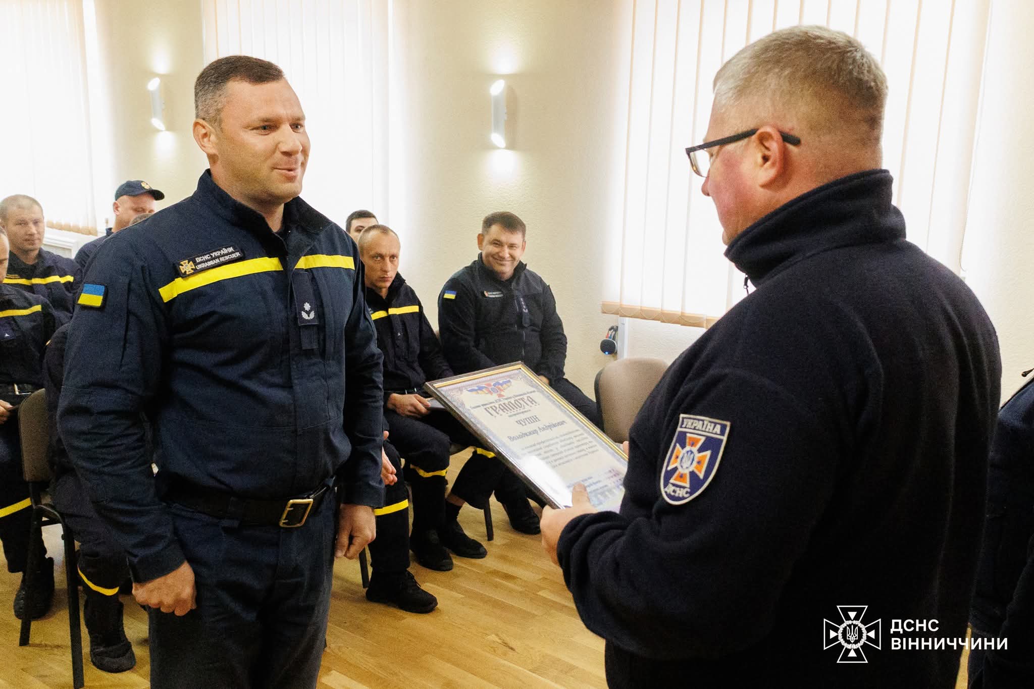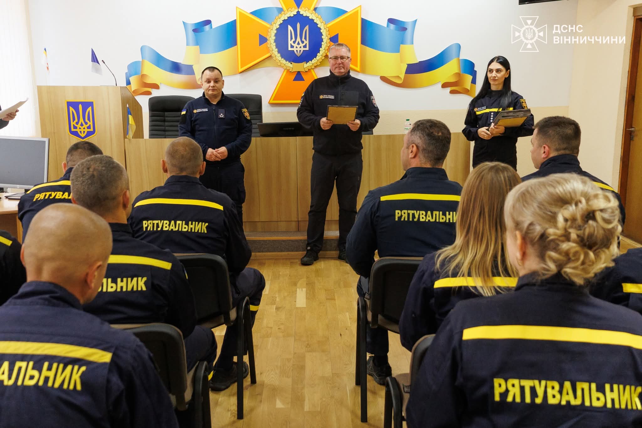 З нагоди Дня захисників і захисниць України, а також за сумлінне виконання службових обов’язків, зразкову дисципліну та високий професіоналізм, працівники ДСНС у Вінницькій області отримали почесні грамоти, відомчі відзнаки та чергові спеціальні звання.