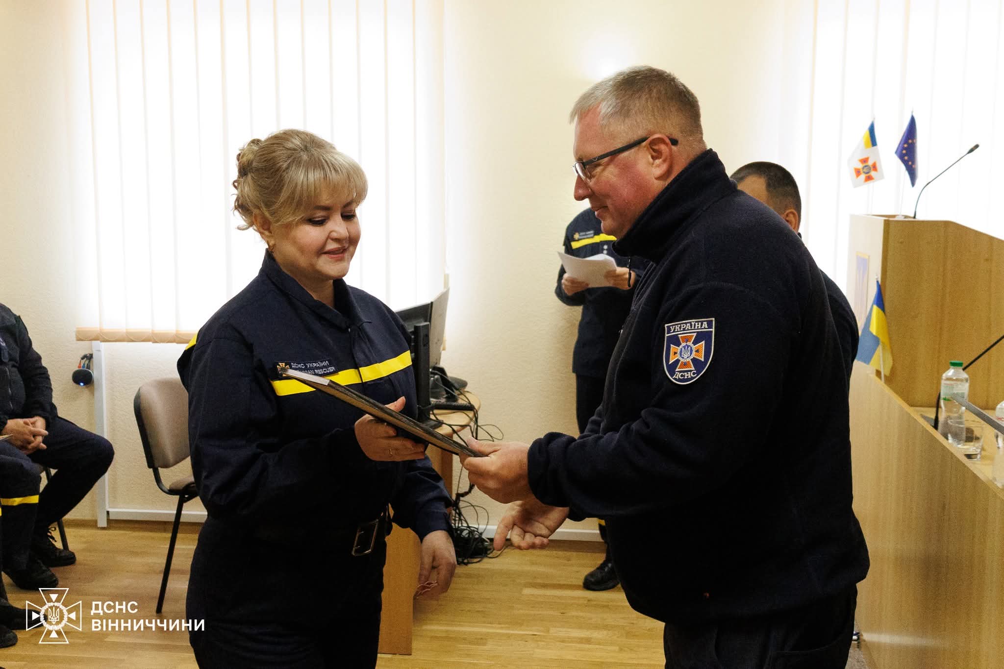 Відзнаки та погони офіцерам вручив заступник начальника Головного управління ДСНС України у Вінницькій області Дмитро Рихліцький.