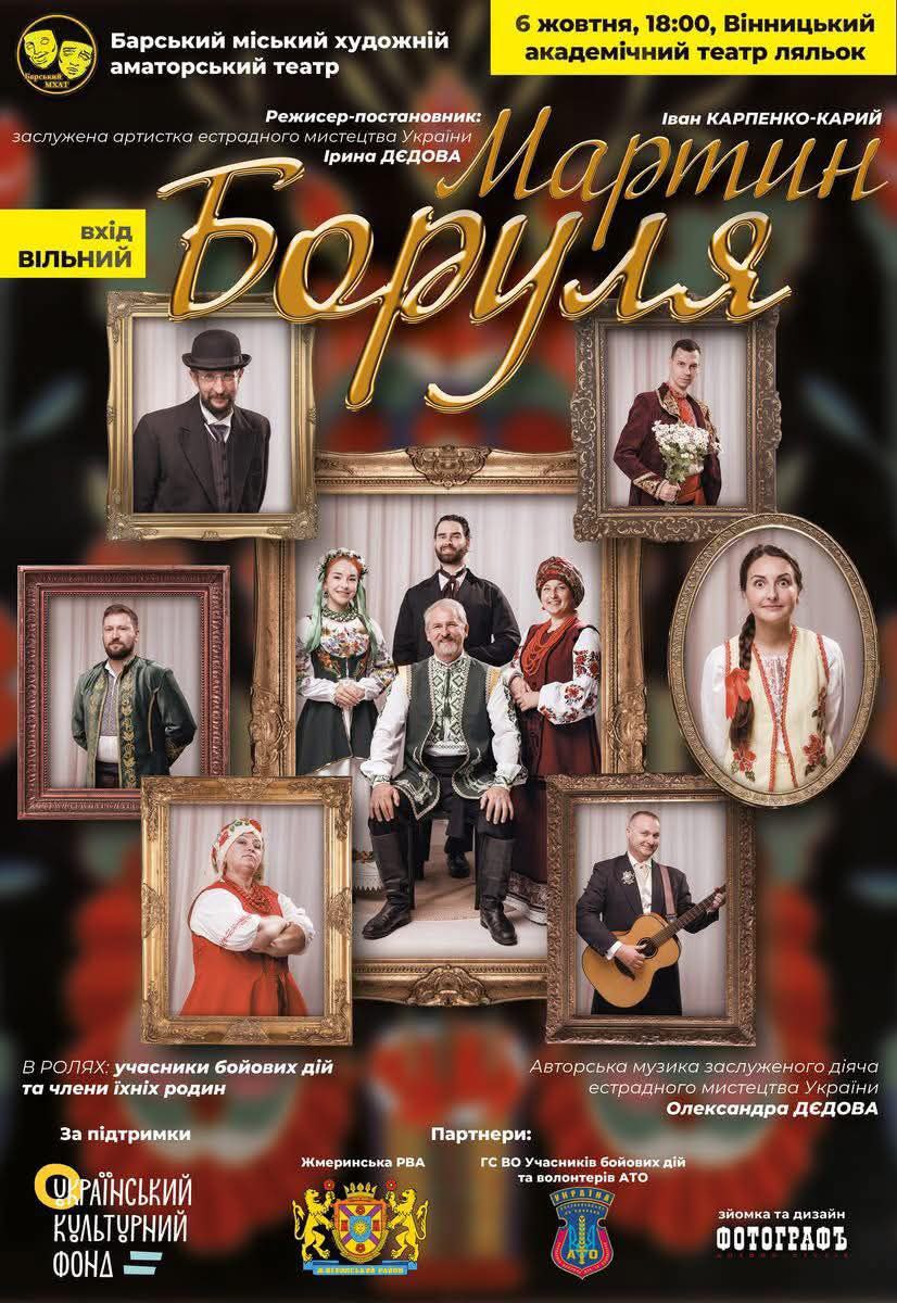 Вже майже два тижні українська публіка із захопленням зустрічає гастролі Барського МХАТу, який представляє на сценах країни свою нову постановку — «Мартин Боруля» за класичною п’єсою Івана Карпенка-Карого. Під керівництвом режисерки Ірини Дєдової у виставі задіяні не лише професійні актори, а й п’ять ветеранів та п’ять членів родин військових. Разом вони створюють емоційно насичене дійство, що поєднує класику української драматургії з живою енергією сучасності.