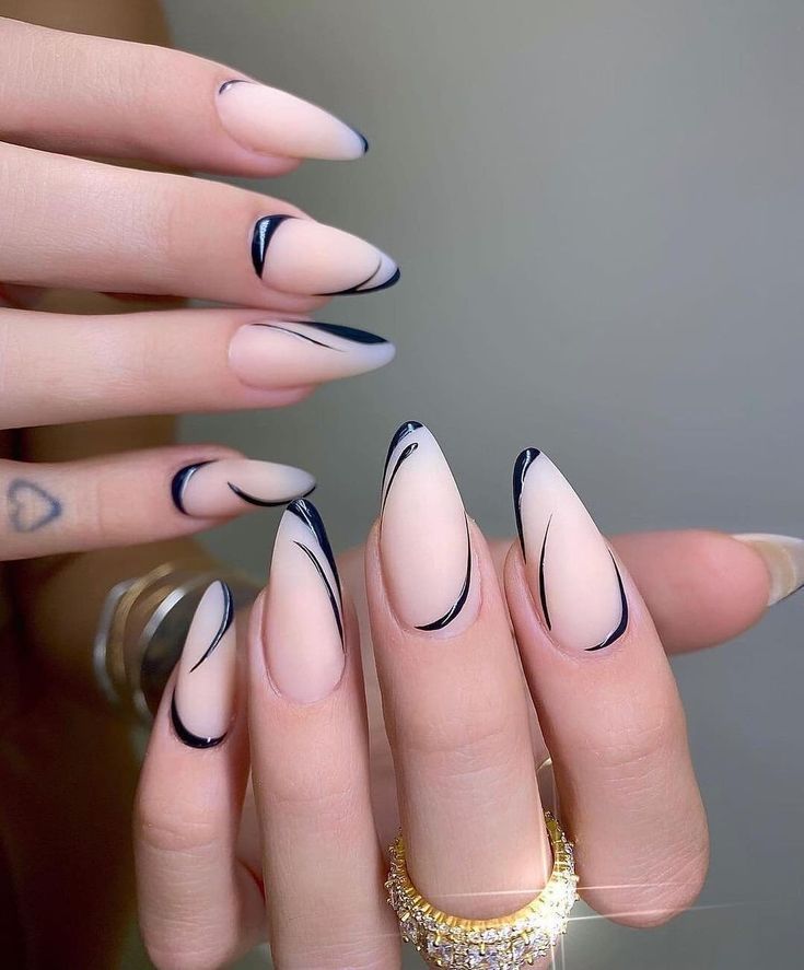 У тренді — комбінація різних фактур на одному манікюрі: наприклад, матова база з глянцевими краплями або металевими вставками.