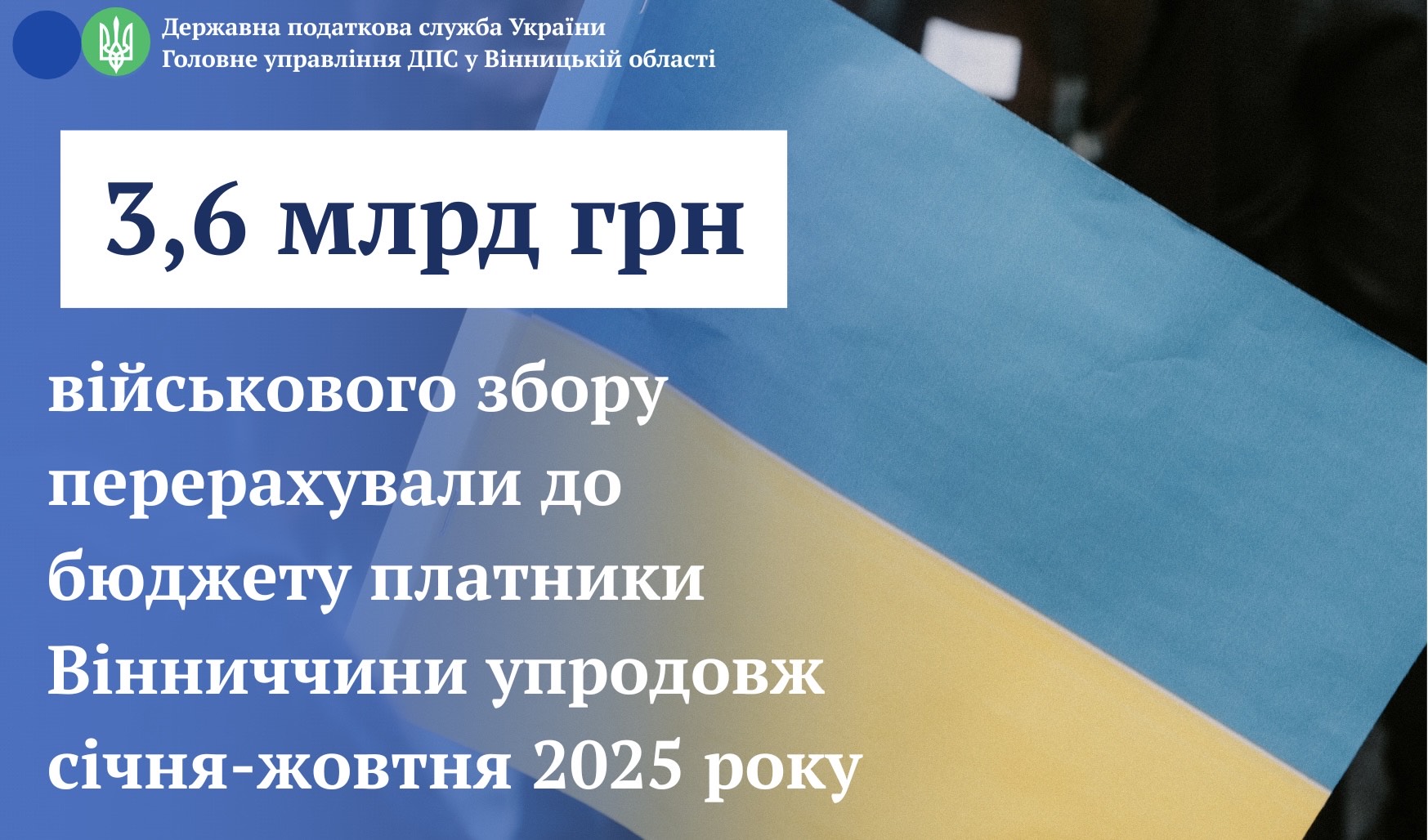 Окремо начальниця податкової служби наголосила, що лише за січень–жовтень 2025 року на потреби оборони з області перераховано понад 3,6 млрд грн військового збору.