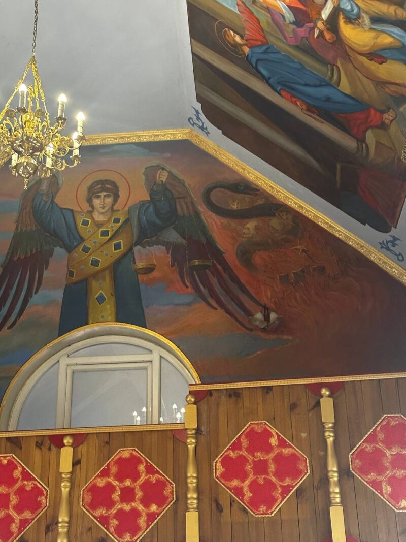 У селі Росоша на Вінниччині в церкві святого великомученика Димитрія Солунського ПЦУ з’явилася оригінальна авторська фреска. Митець зобразив на ній символічне покарання російської імперської агресії та її ідеологів — як художнє висловлення протесту проти війни та авторитаризму. Робота вже привернула увагу відвідувачів своєю незвичністю та чіткою позицією щодо подій в Україні.