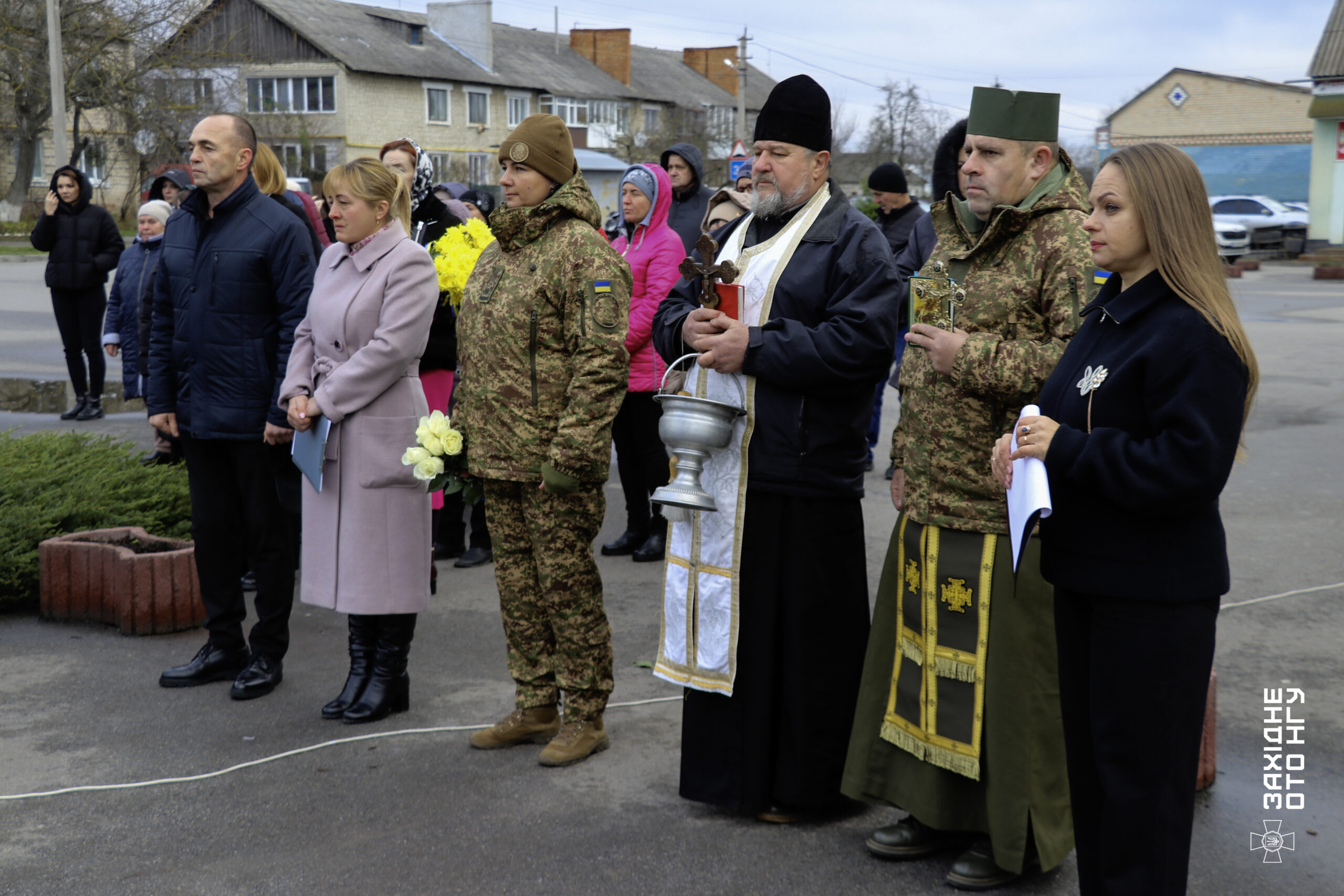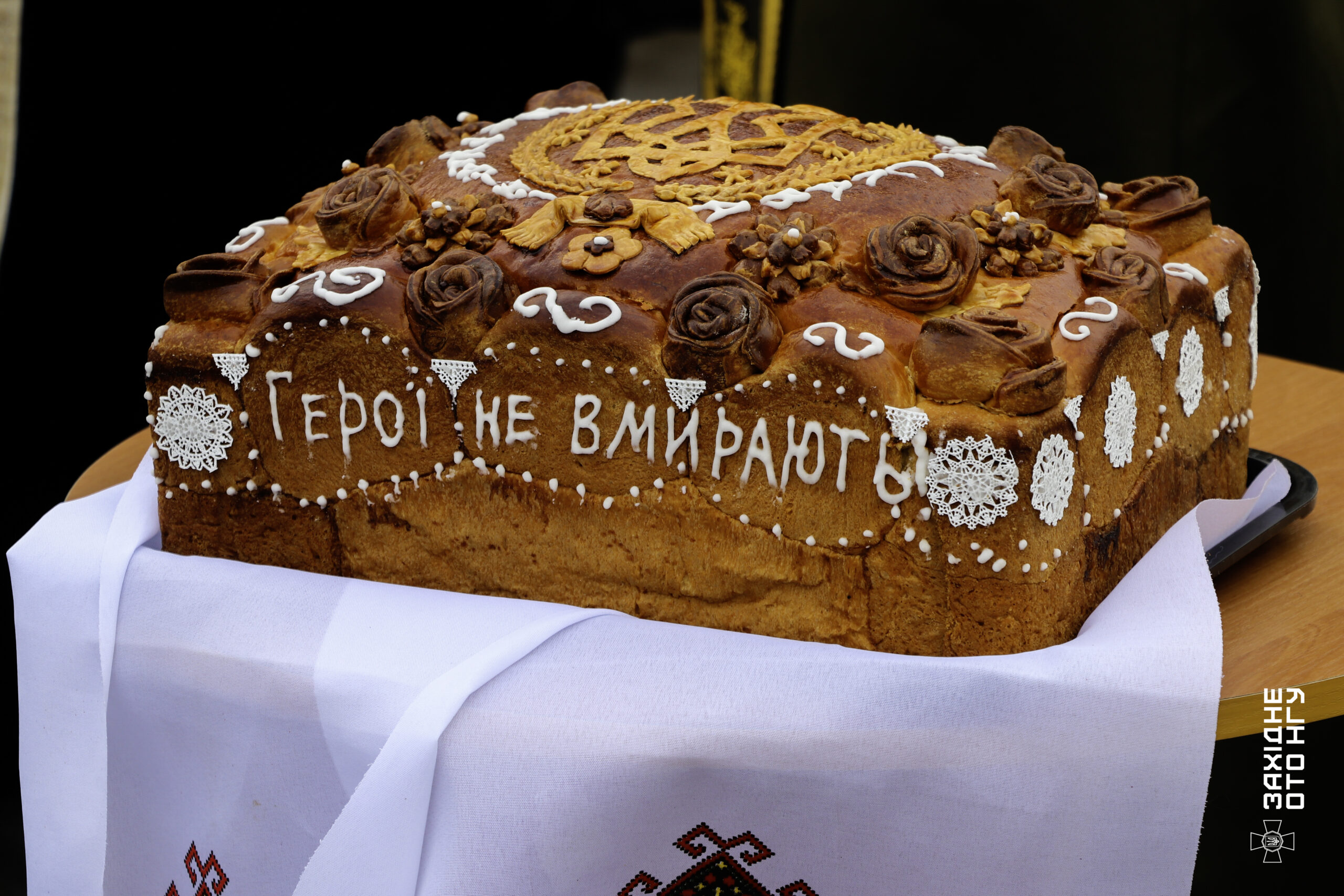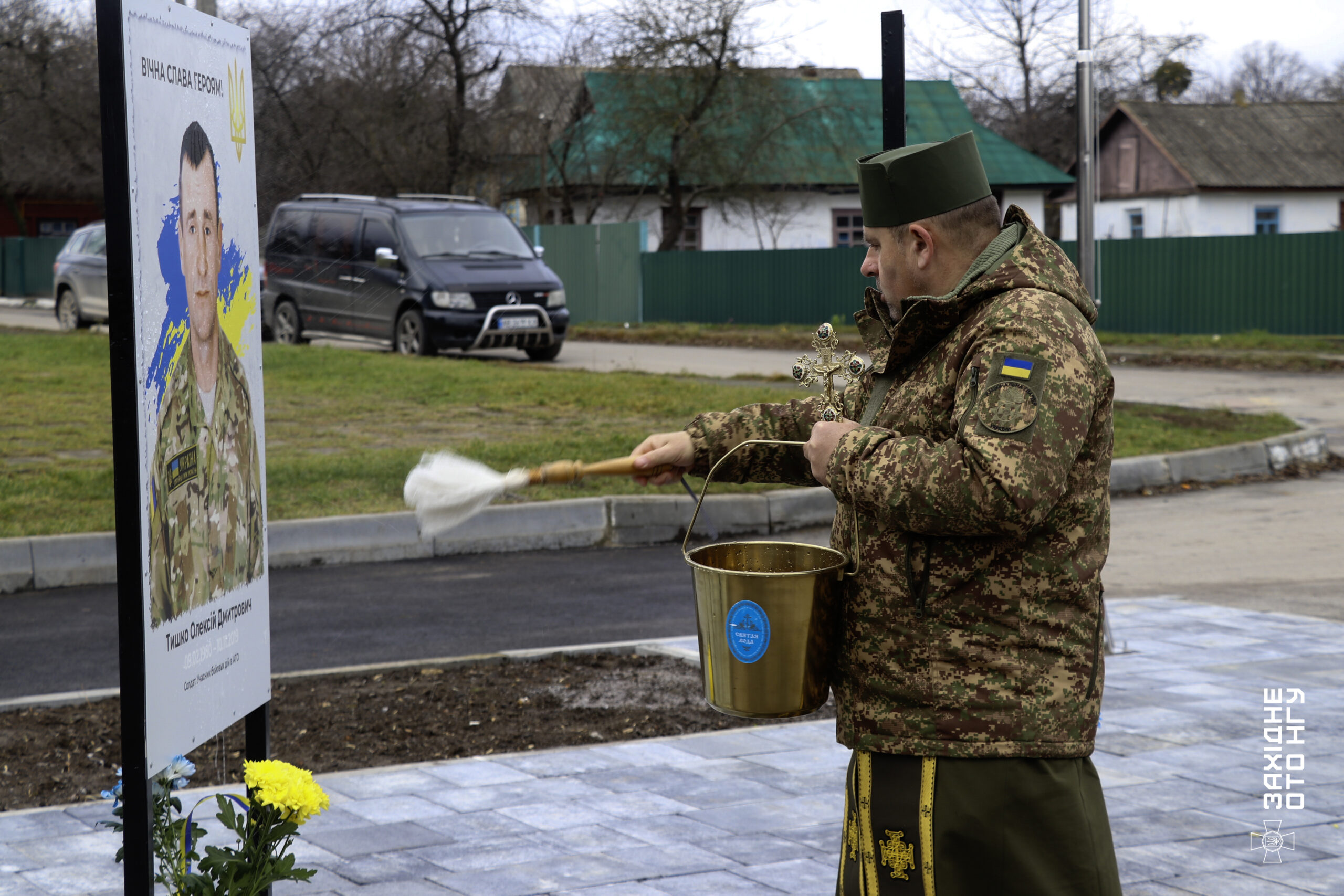 Після урочистостей військовий капелан і настоятель місцевого храму провели спільну молитву та окропили святою водою стенди з фотографіями та інформацією про загиблих і померлих військовослужбовців.