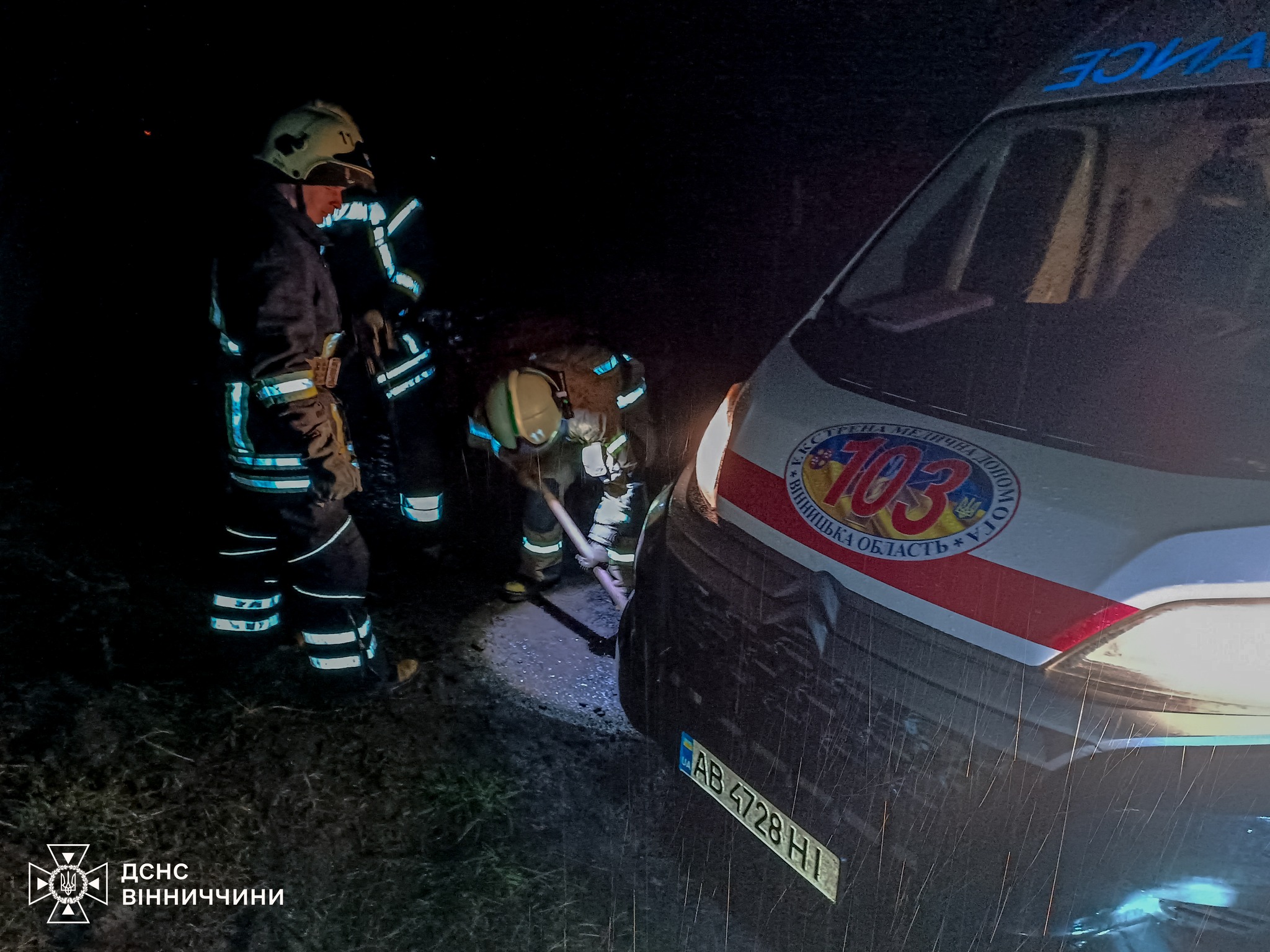 Рятувальники Головного управління ДСНС України у Вінницькій області оперативно втрутилися: без спеціальної техніки вони вручну витягли автомобіль служби 103 на тверду ділянку дороги.