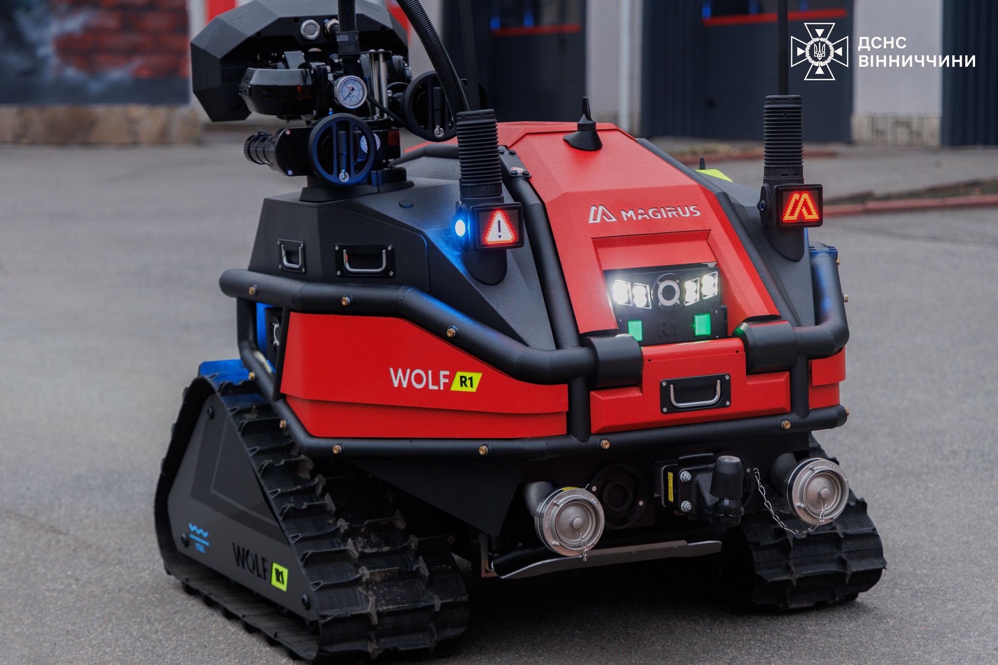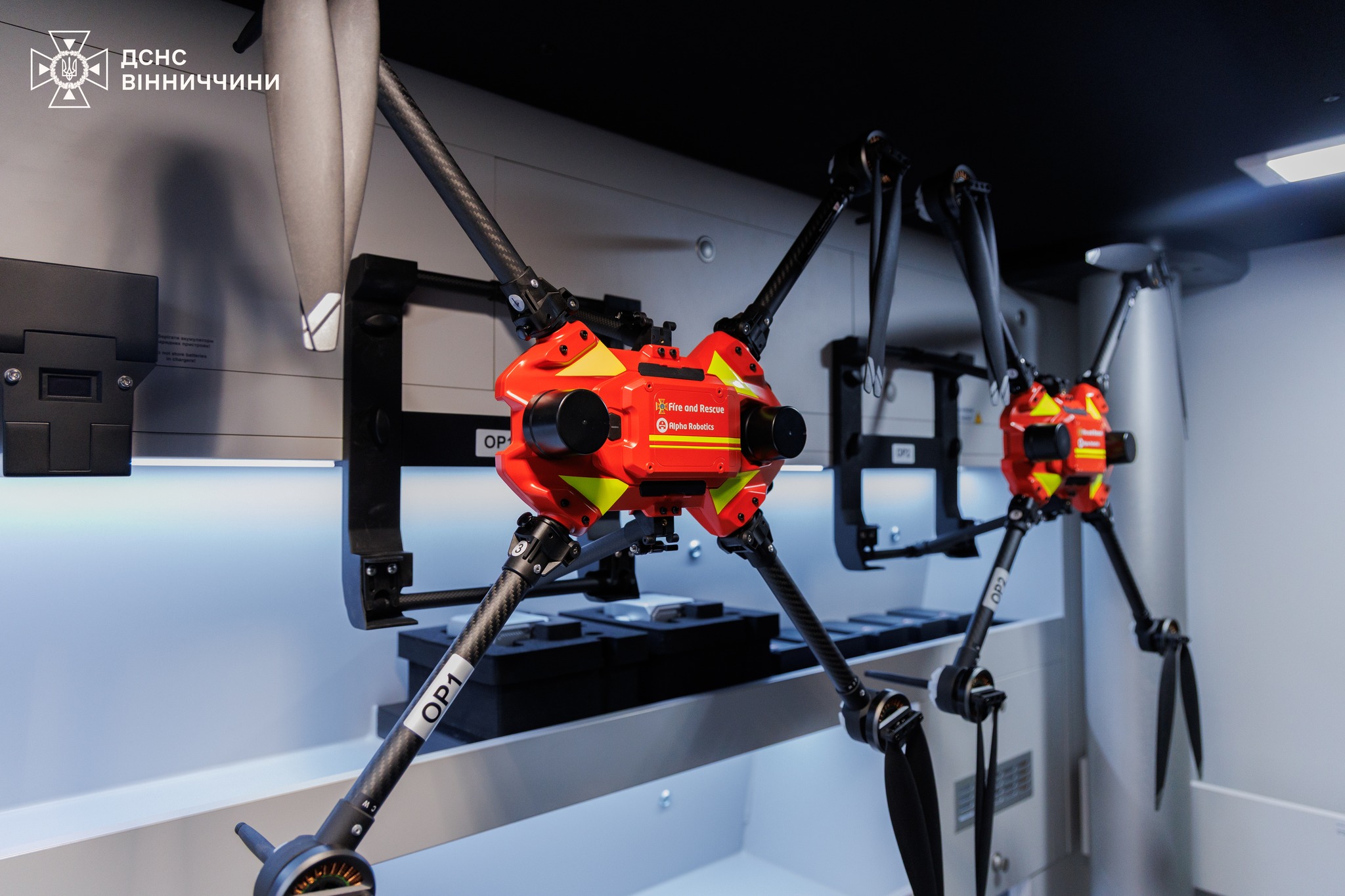 До комплексу входить інноваційний робот пожежогасіння, який може діяти у зонах підвищеного ризику: на місцях прильотів, у районах можливих повторних обстрілів та серед завалів. Два безпілотники забезпечують оперативну повітряну розвідку, оцінку масштабів руйнувань та координацію роботи підрозділів у режимі реального часу.