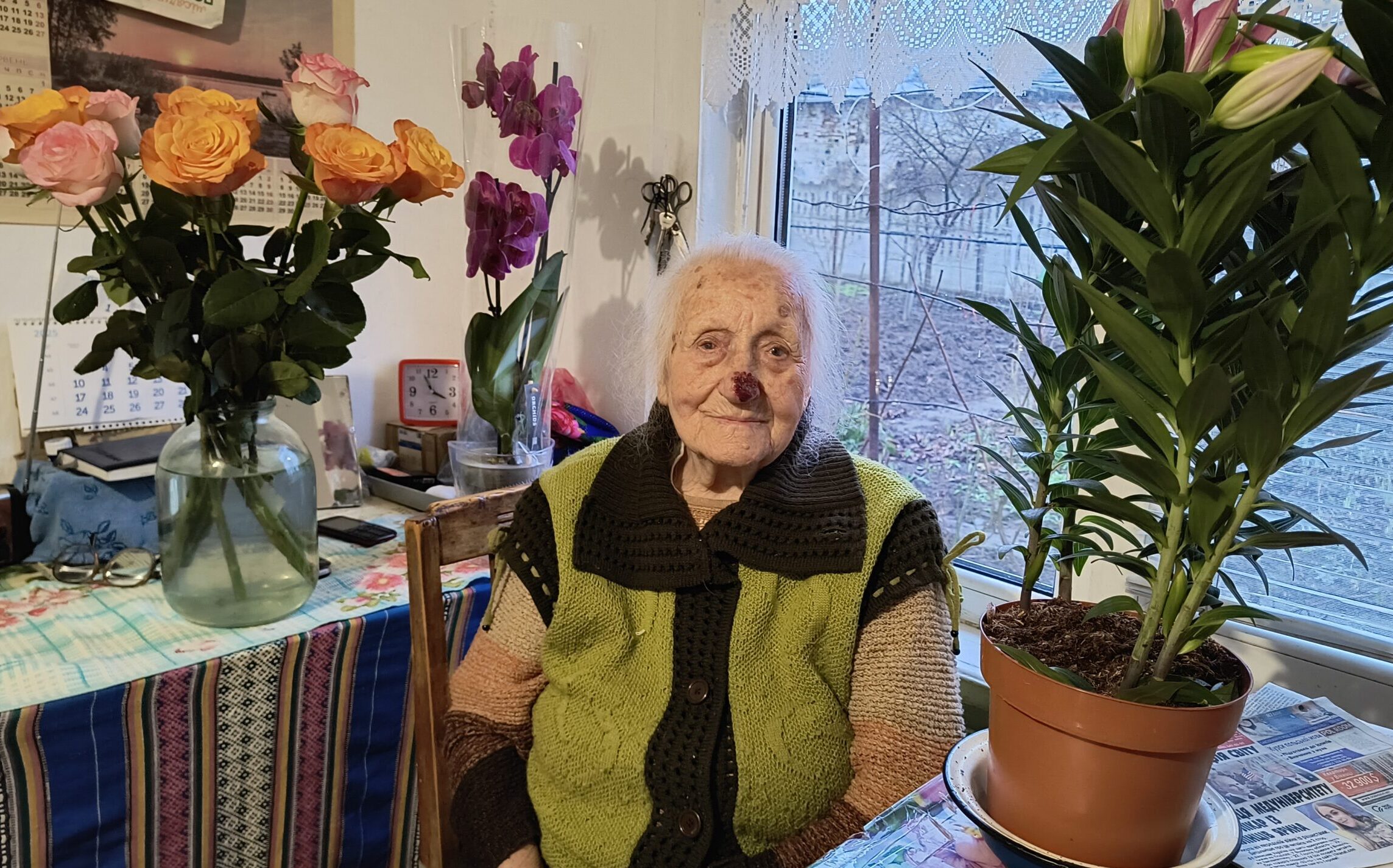 «Серце болить за теперішні новини, за людей, за країну… Дивлюсь телевізор, читаю… Не вірила, що знову буде війна, темрява, вимкнення світла.», — говорить ювілярка.