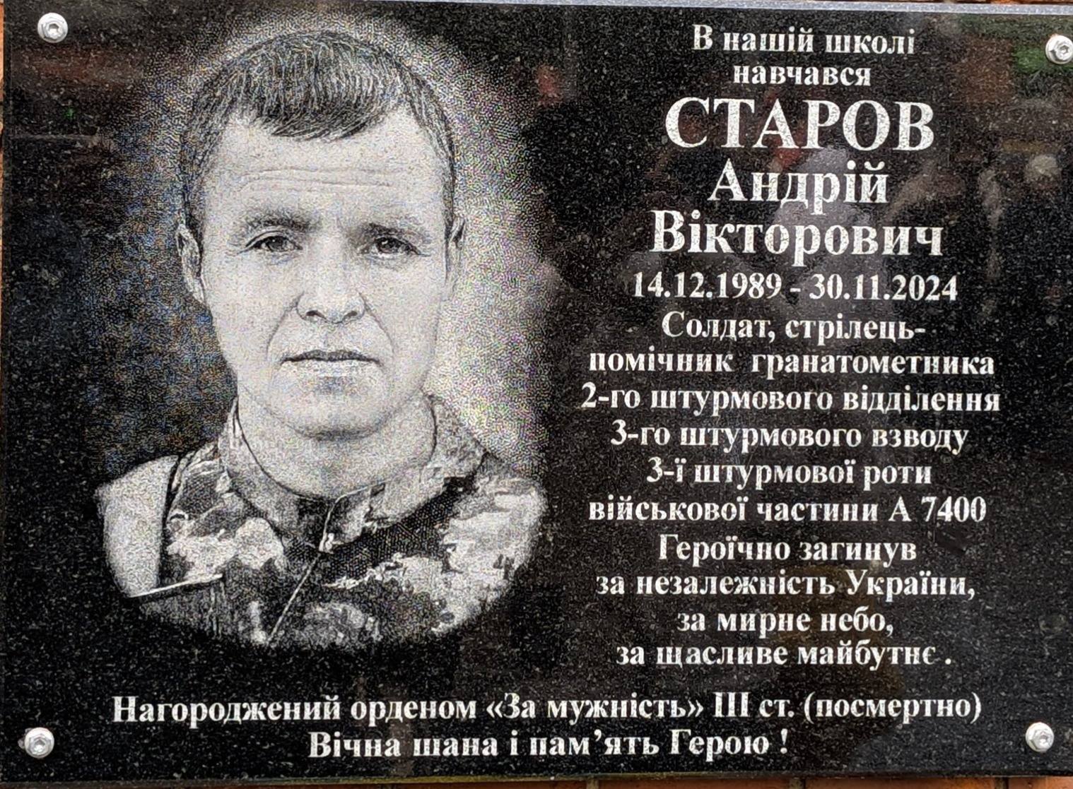 Андрій Старов, 1989 року народження, проходив контрактну службу у складі 225-го окремого штурмового батальйону. Загинув 30 листопада 2024 року під час виконання бойового завдання в Курській області. Похований на Алеї Слави в Гайсині. У 2025 році нагороджений орденом «За мужність» ІІІ ступеня посмертно.