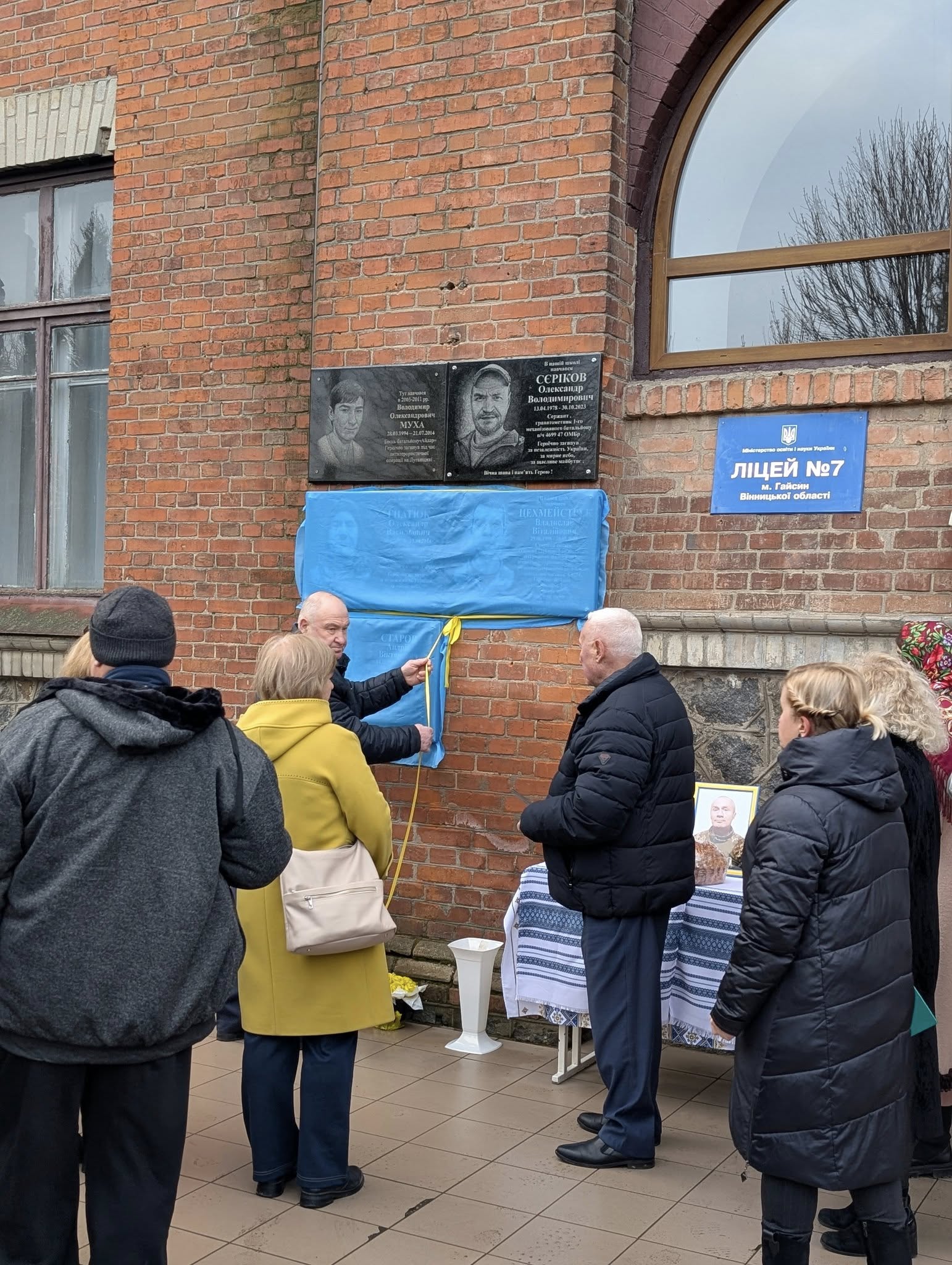 12 грудня 2025 року в місті Гайсин на фасадах двох закладів освіти відкрили п’ять меморіальних дошок на честь воїнів-земляків, які загинули, захищаючи незалежність і територіальну цілісність України. Про це повідомила Гайсинська міська рада.