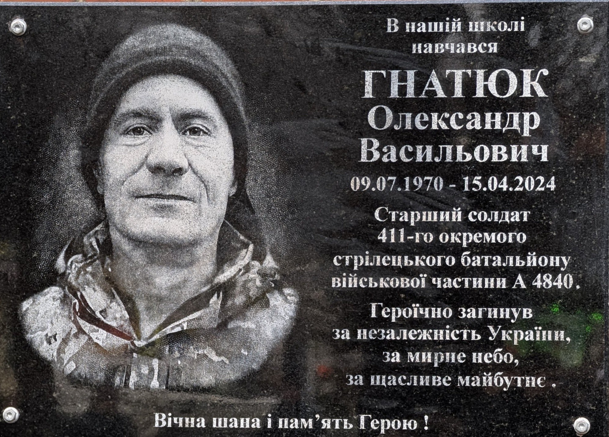 Олександр Гнатюк, 1970 року народження, служив гранатометником у 411-му окремому стрілецькому батальйоні. Загинув 15 квітня 2024 року поблизу населеного пункту Терни Краматорського району. Похований у селі Нижня Кропивна.