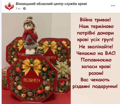 Працівники центру наголошують: не варто зволікати. Крім благородної справи, для донорів підготували святкові різдвяні подарунки.