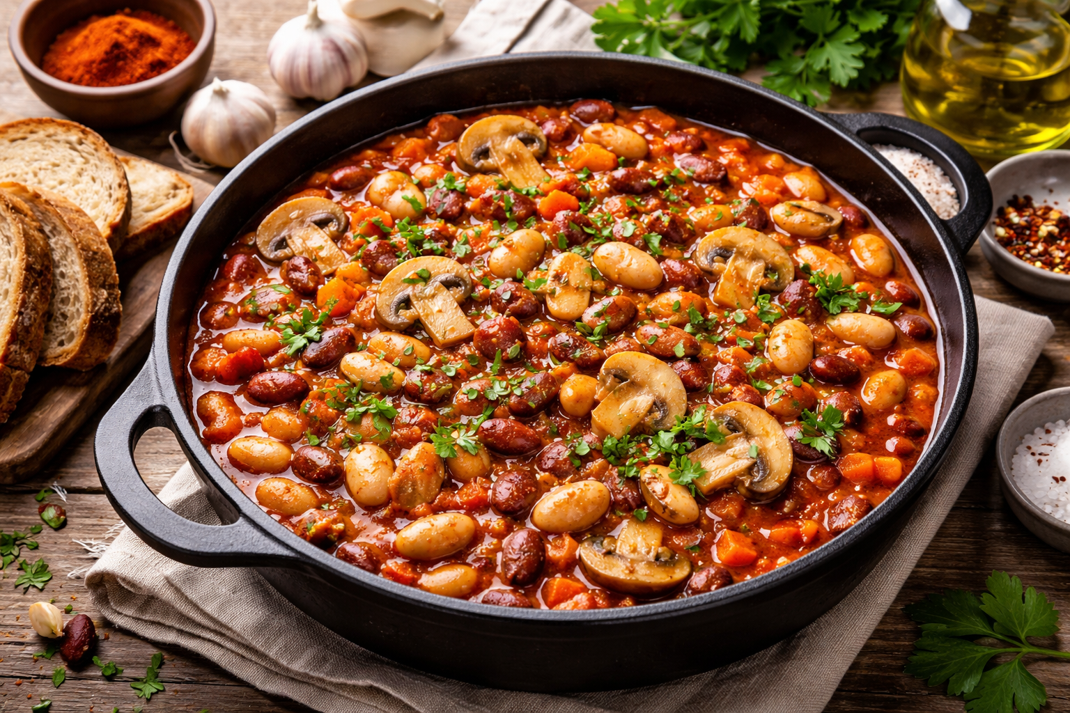 Поживна й тепла страва, яка добре смакує взимку та підходить як для обіду, так і для вечері. Квасоля дає відчуття ситості, а гриби додають насиченого смаку.