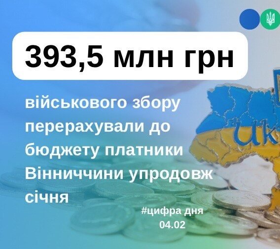 Окремо повідомляється, що протягом січня 2026 року платники Вінниччини перерахували на підтримку обороноздатності України понад 393,5 млн грн військового збору.