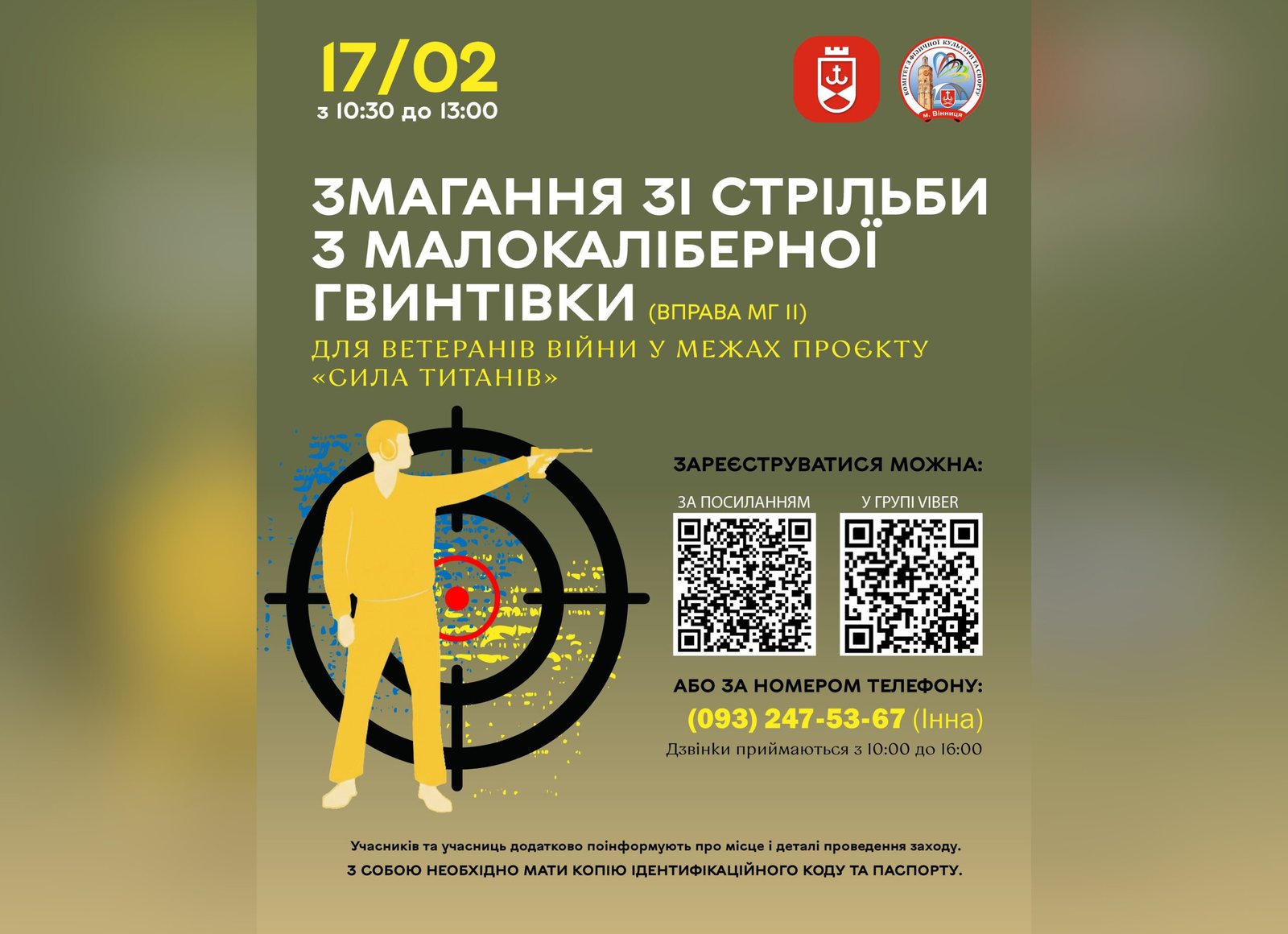 Ветеранів війни запрошують взяти участь у відкритому чемпіонаті зі стрільби кульової в межах проєкту «Сила титанів». Змагання відбудуться 17 лютого з 10:30 до 13:00.
